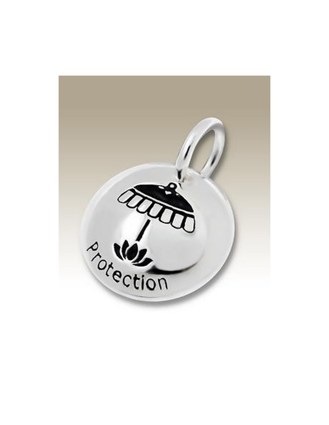 Dieser schöne runde Anhänger ist aus echtem Silber 925 gefertigt und mit einem Regenschirm-Motiv verziert, das einen Lotus überragt. Das Bild mag auf den ersten Blick einfach erscheinen, aber seine Bedeutung ist großartig! Im Buddhismus ist dieses Symbol ein Zeichen für Schutz und Wohlstand, für Ruhe und Gelassenheit.