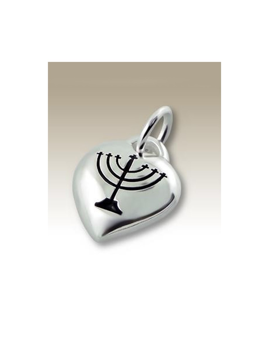 Dieser herzförmige Anhänger ist aus echtem Silber 925 gefertigt. Das geschlagene und schwarz lackierte Symbol stellt eine Menora, den siebenarmigen hebräischen Leuchter, dar. In der hebräischen Religion beschwört die Menora, einmal angezündet, die Gegenwart Gottes herauf.