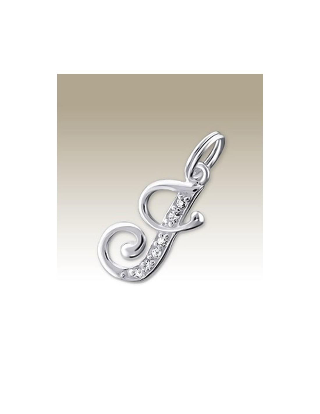 Anhänger aus 925er Silber in Form des Buchstabens J und mit Kristallen verziert. Der Brief ist in schöner handschriftlicher Kalligraphie geschrieben.