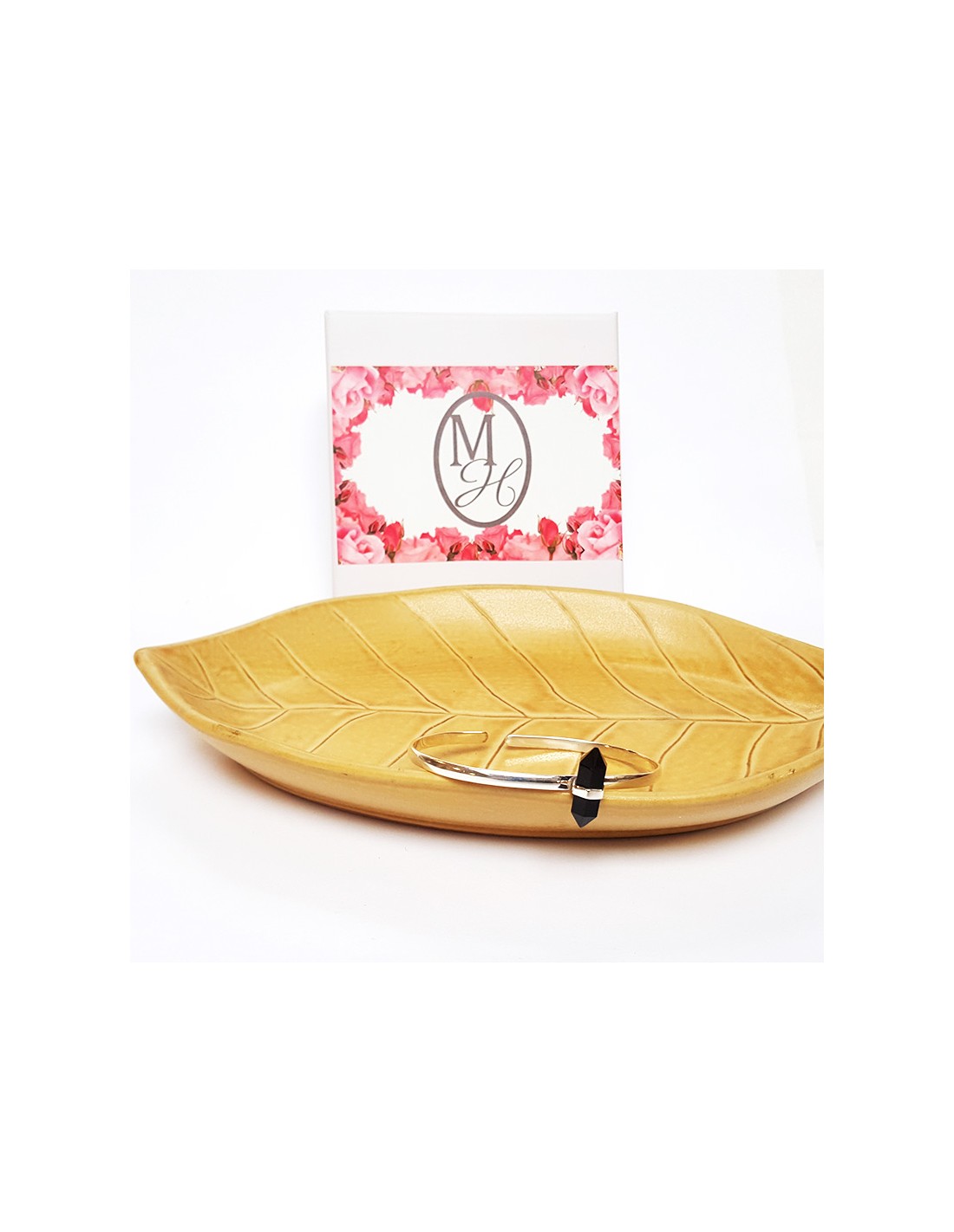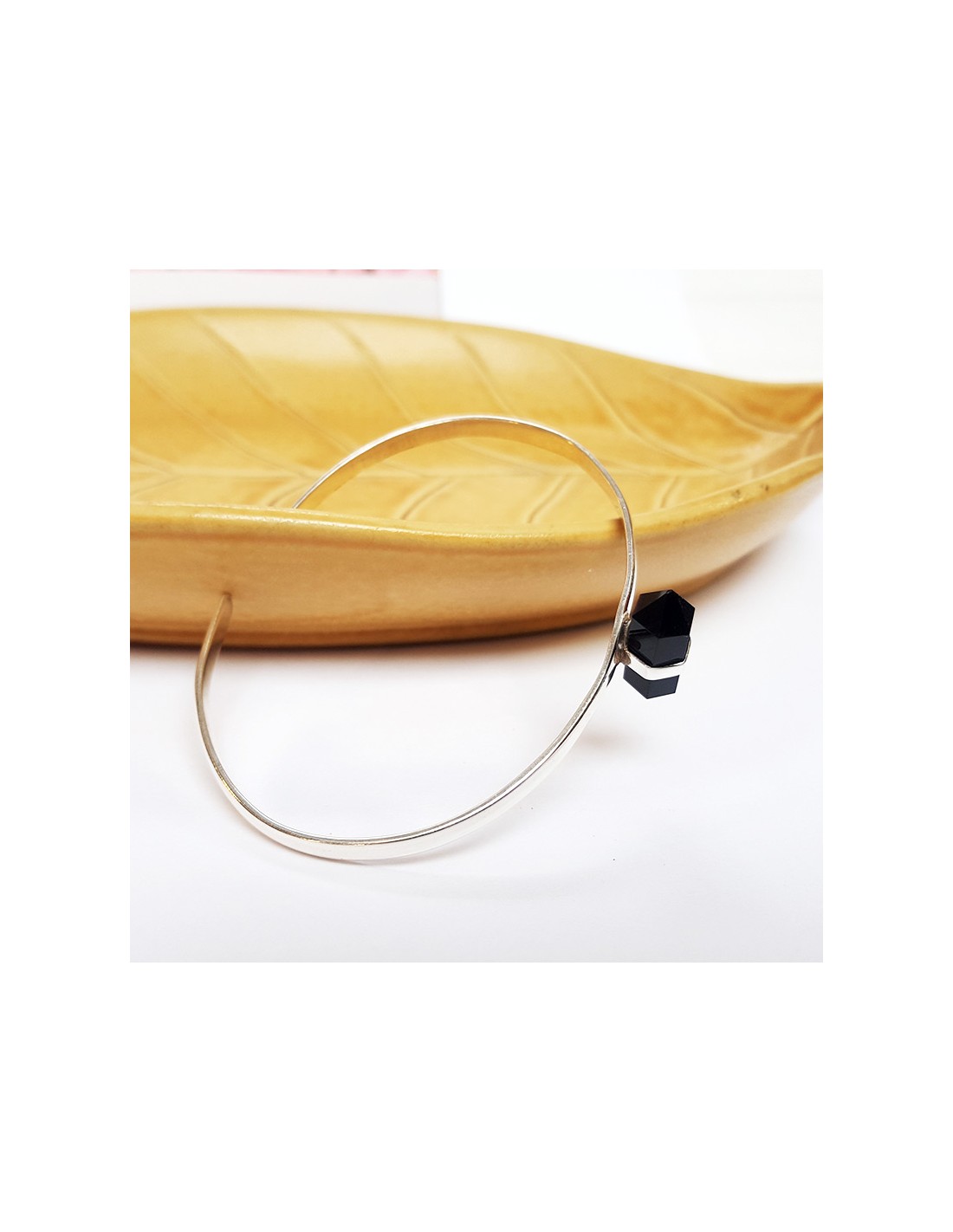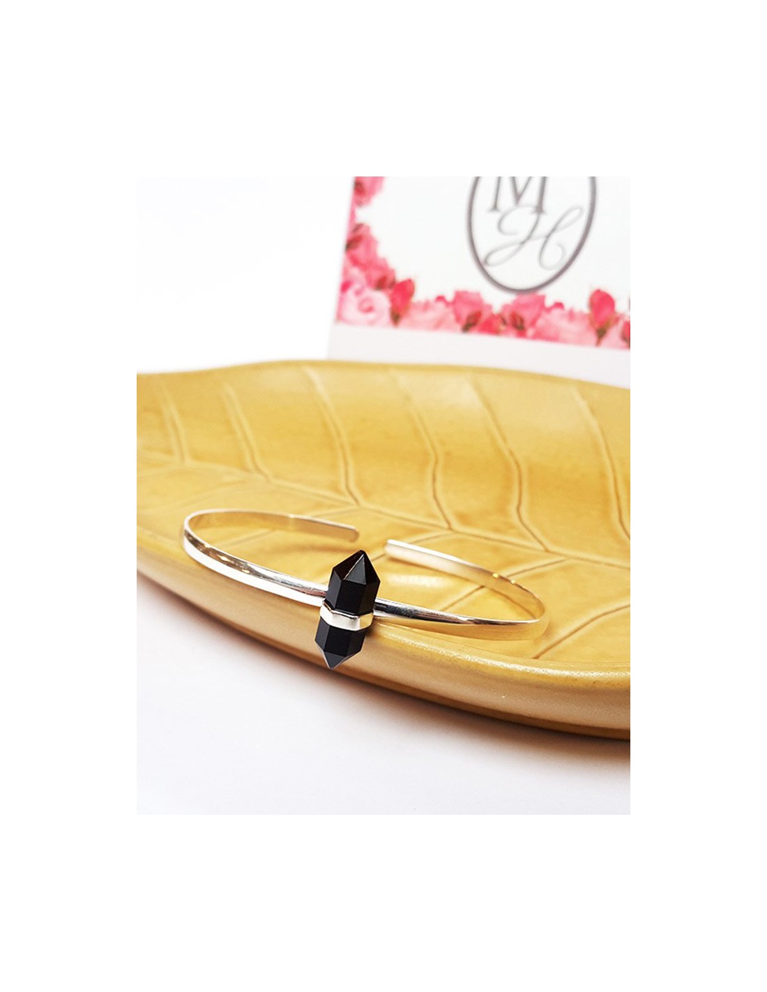 Dieses Armband aus echtem 925er Silber ist mit einem feinen schwarzen Onyx verziert, der zu einer Doppelspitze geschliffen wurde. Ein dezentes und schickes Accessoire, dessen schlichtes Design den feinen Stein besonders gut zur Geltung bringt.