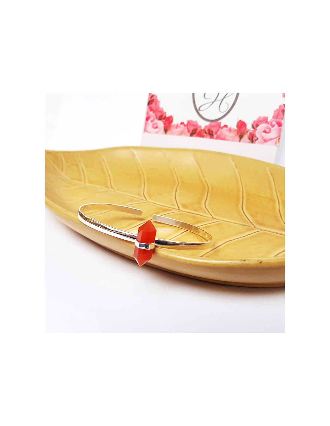 Dieses schlichte Armband aus 925er Silber ist mit einer doppelt geschliffenen Spitze aus Sardonyx besetzt. Ein raffiniertes Schmuckstück, das dennoch schlicht bleibt.