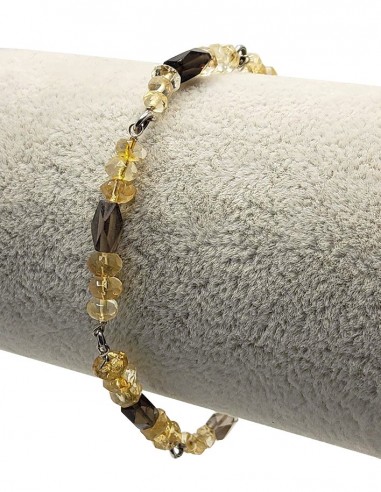 Armband aus 925er Silber mit Citrin- und Rauchquarzperlen.