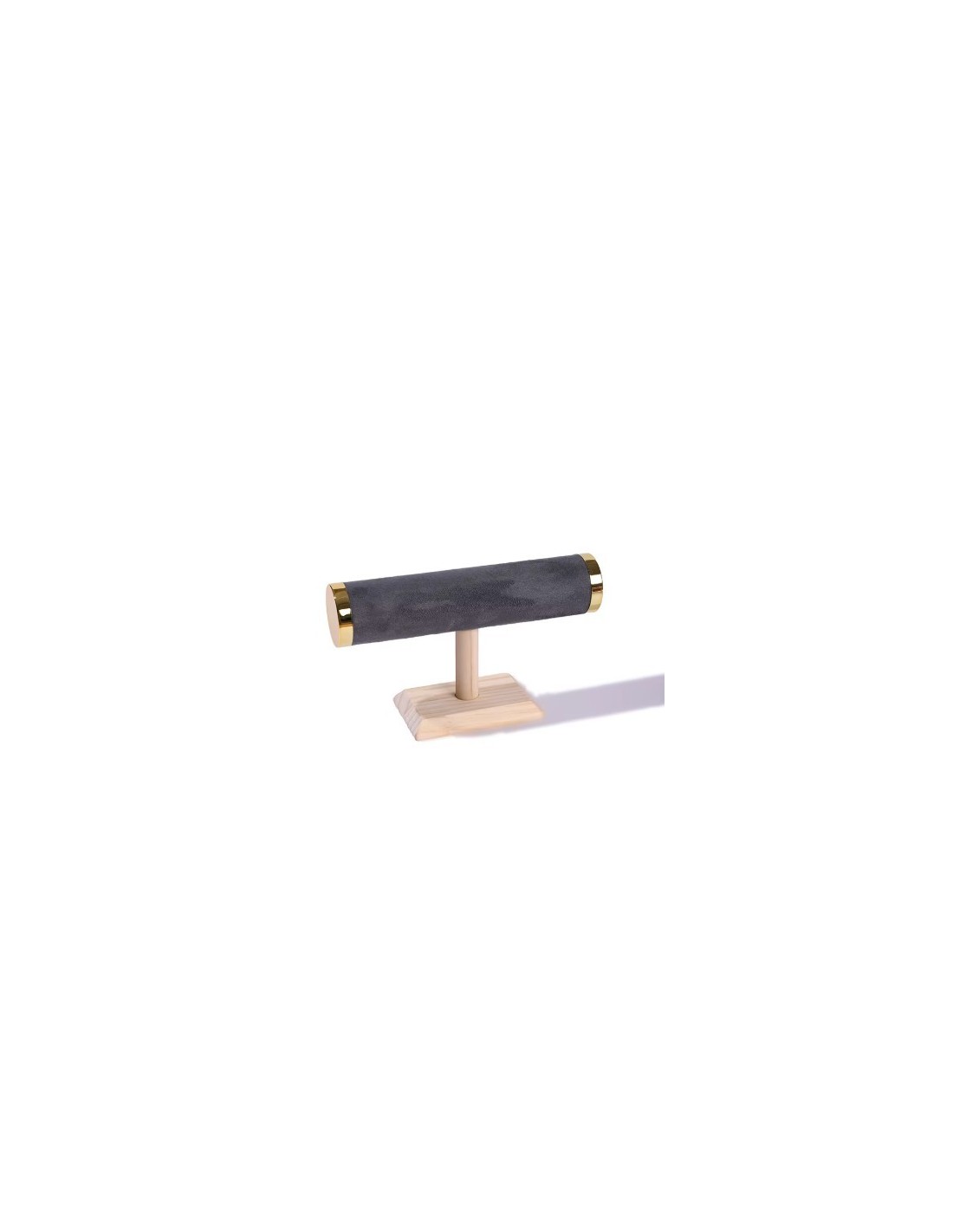 Bringen Sie Ihre Armbänder mit diesem eleganten Ständer aus Naturholz und grauem Samt zur Geltung. Sein raffiniertes Design, das durch goldene Verzierungen aufgewertet wird, bringt Ihren Schmuck zur Geltung und hält ihn gleichzeitig gut organisiert. Ideal für Schaufenster, Boutiquen oder den persönlichen Gebrauch, verleiht er Ihrer Sammlung einen schicken und gepflegten Touch. Dieser stabile und robuste Ständer ist perfekt für eine harmonische und ästhetische Präsentation.