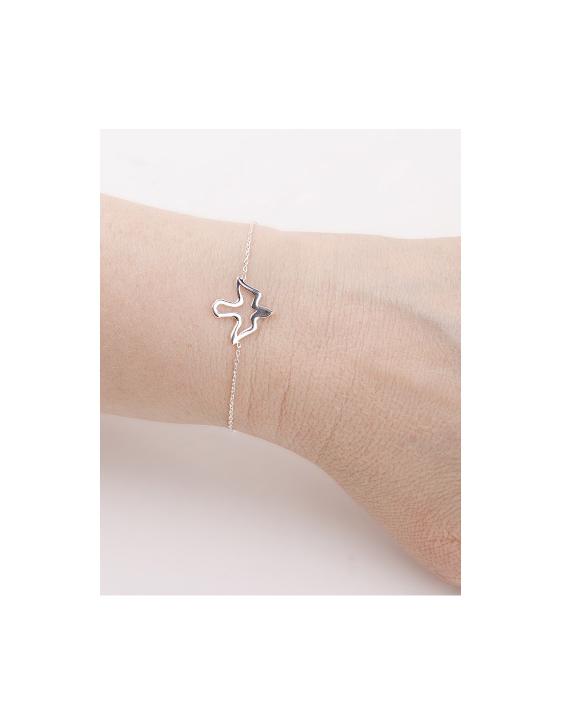Armband aus echtem Silber 925, fein und zart, mit einem Anhänger, der die Silhouette einer Taube bildet. Dieser Vogel ist ein Symbol des Friedens.