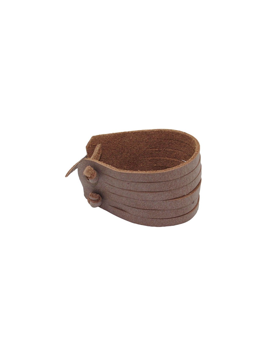 Breites Armband aus braunem Leder, handgefertigt von unseren Partnerhandwerkern. In einem Stück wurde der breitere Teil in sechs Streifen geschnitten, um dem Leder Geschmeidigkeit, aber auch eine modische Seite zu verleihen.