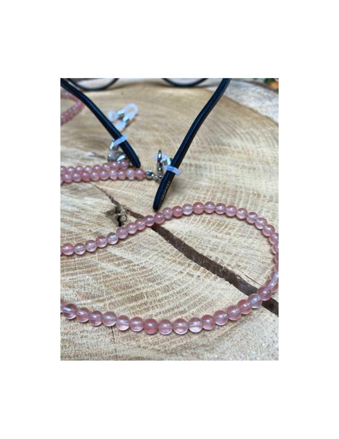 Diese Brillenkordel ist ein praktisches und schönes Accessoire mit Perlen aus Rosenquarz.