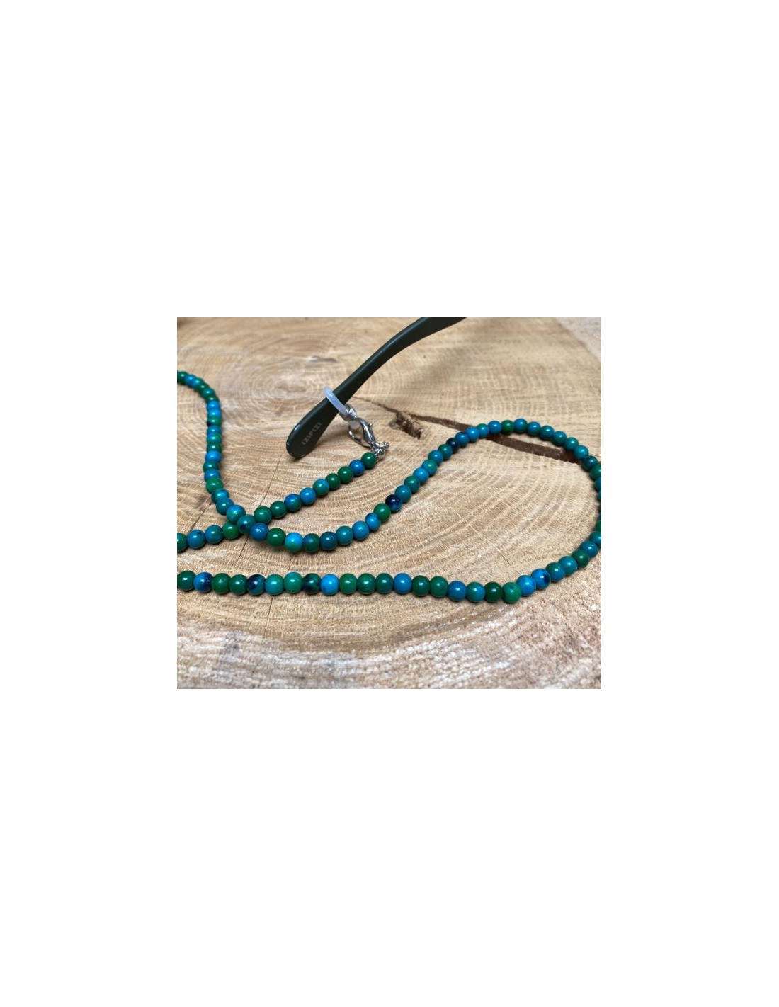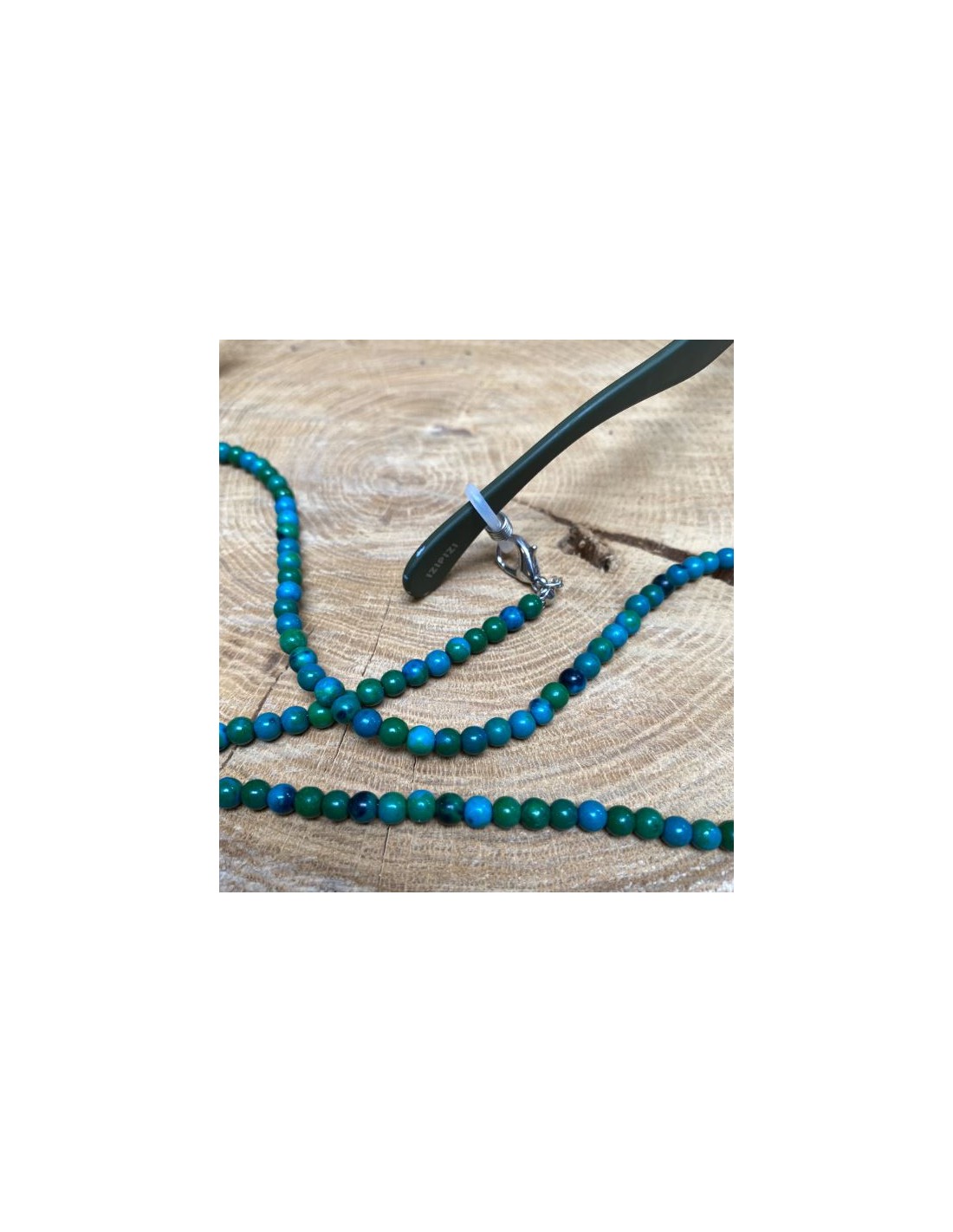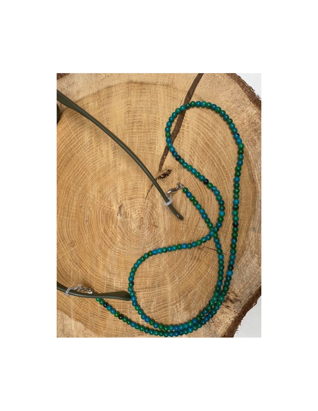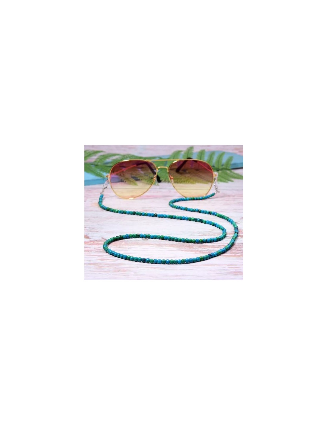 Diese Brillenkordel ist ein schickes und praktisches Accessoire. Praktisch, um die Brille bei sich zu haben, ohne sie tragen zu müssen, schick dank der Perlen aus Türkis, einem feinen Stein, der in der Lithotherapie für seine positiven Eigenschaften bekannt ist.