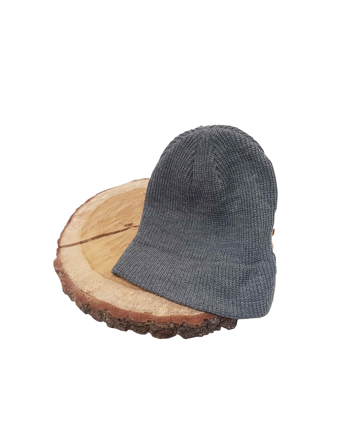 Graue Strickmütze aus Wolle. Die praktische und trendige Wollmütze ist ein unverzichtbares Accessoire.