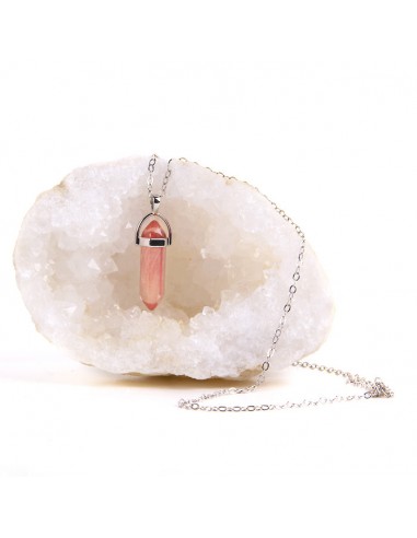 Silberne Metallkette mit rosa Turmalin-Stein-Anhänger.