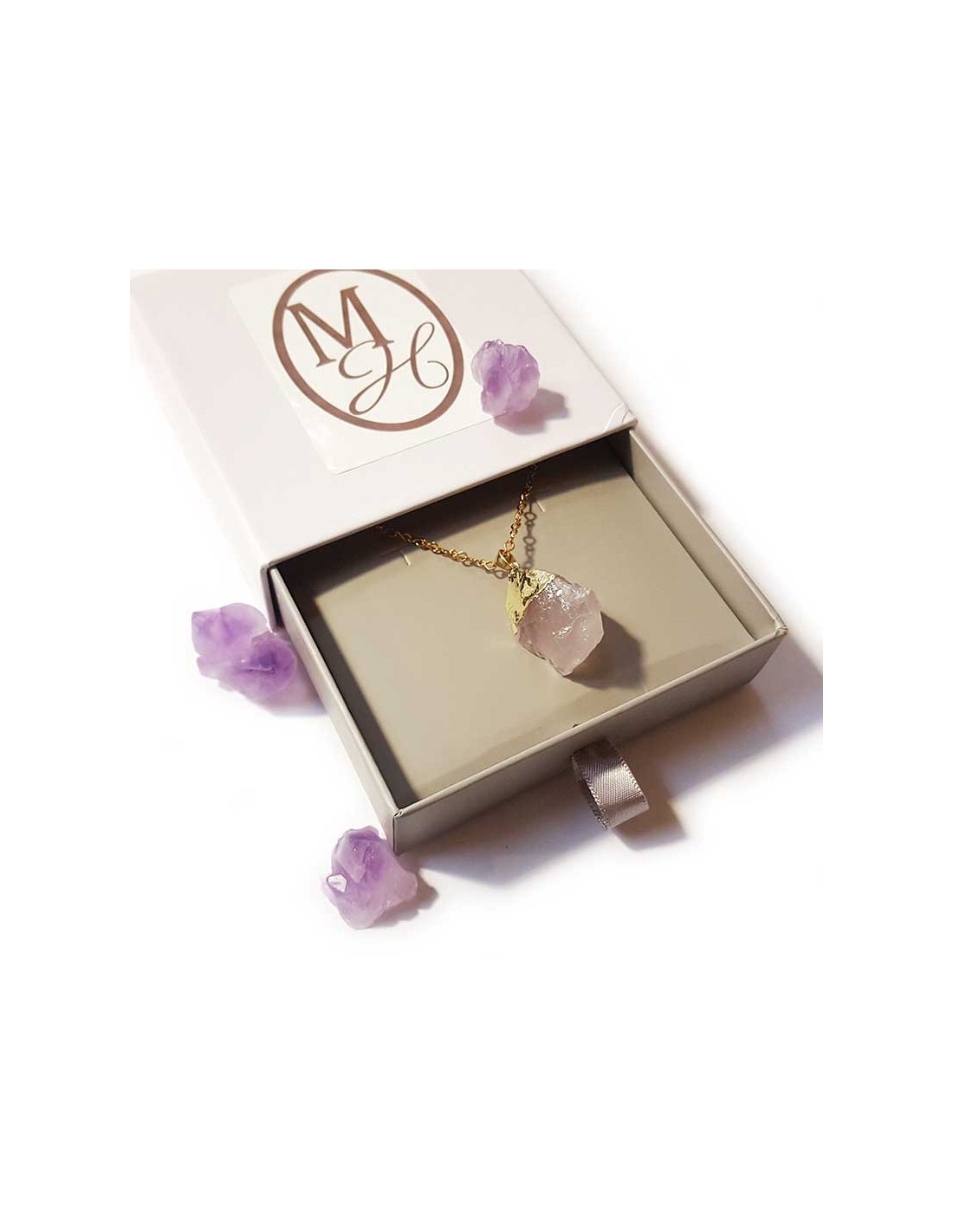 Halskette mit Anhänger aus rauem Stein - Rosenquarz