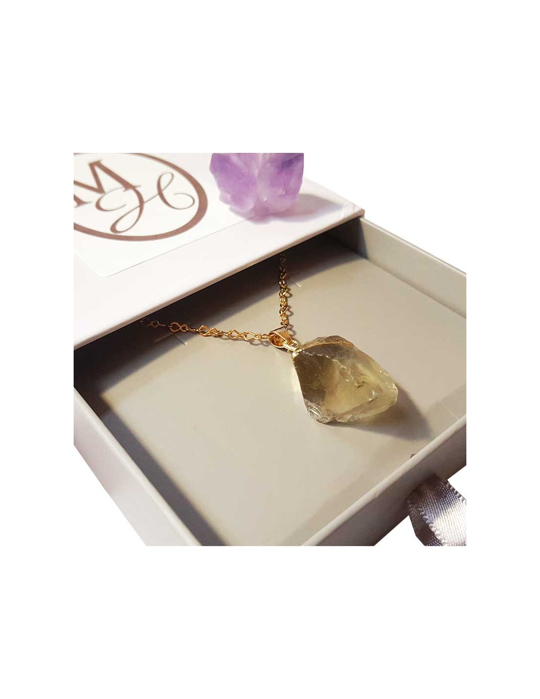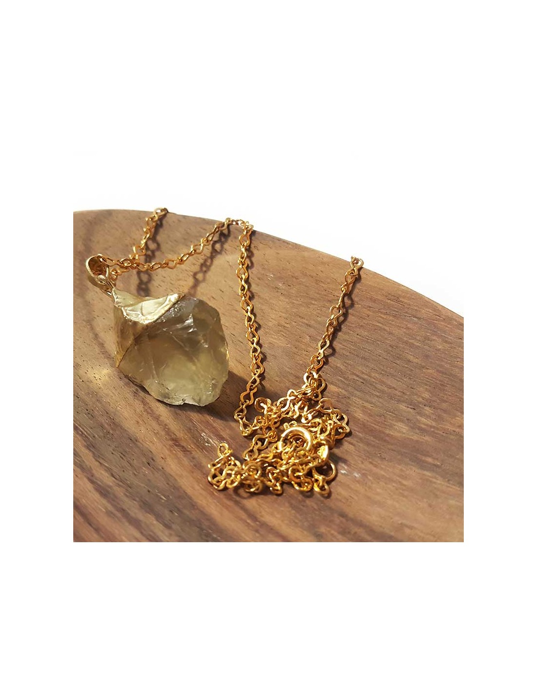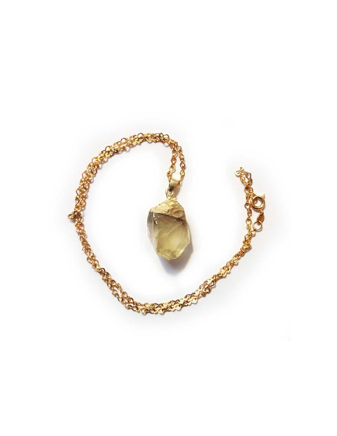 Halskette mit Anhänger aus rauem Stein - Zitronenquarz