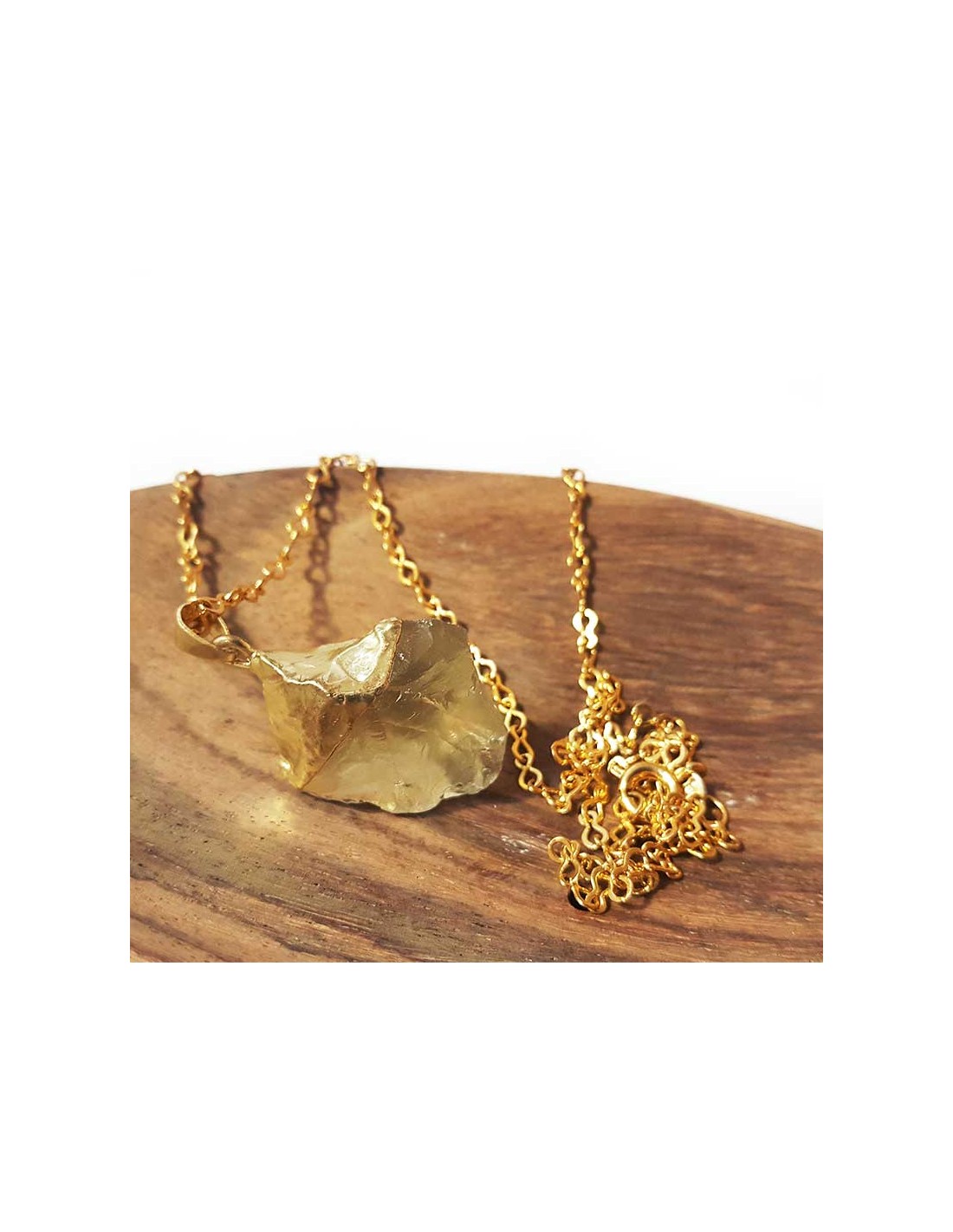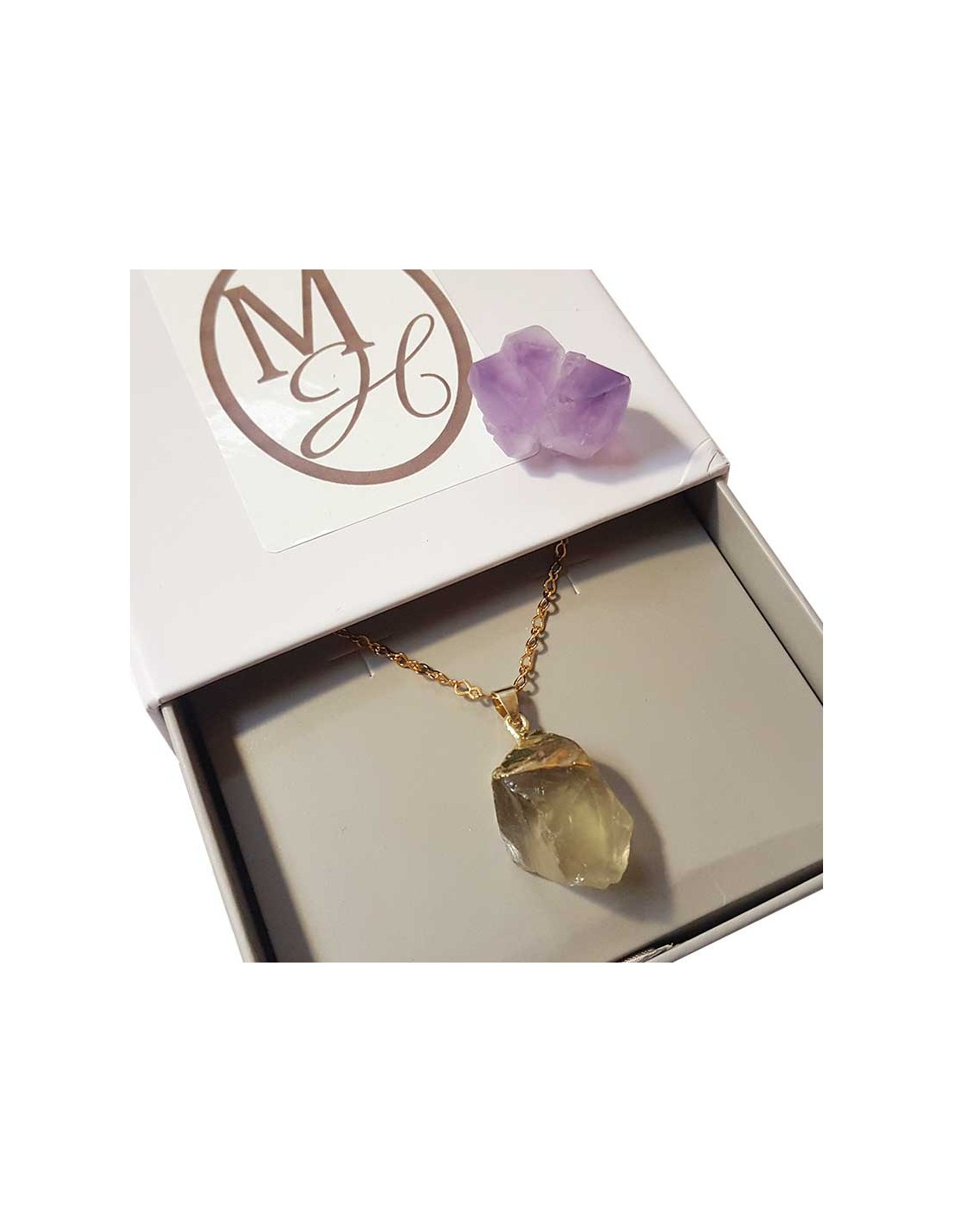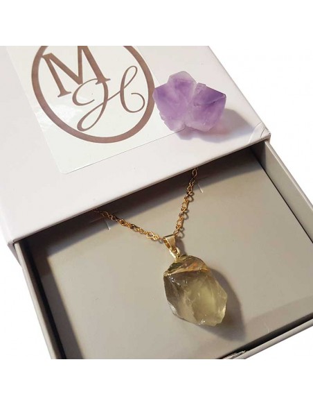 Halskette mit Anhänger aus rauem Stein - Zitronenquarz