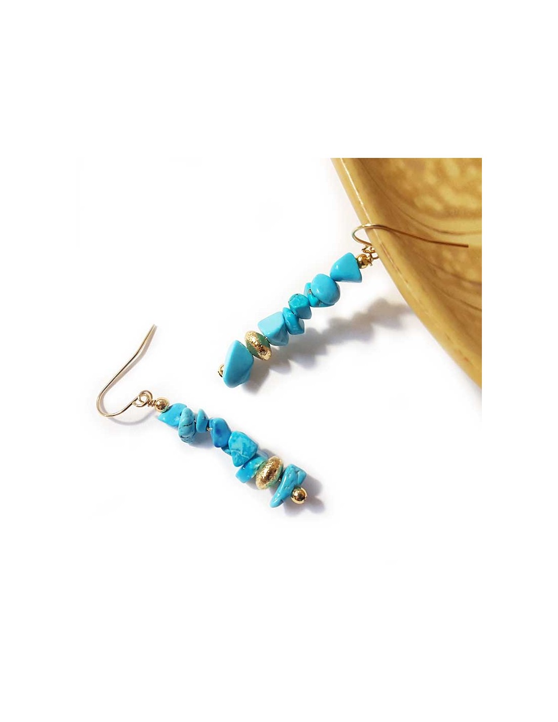 Hängende Rocailles-Ohrringe in Gold und Türkis
