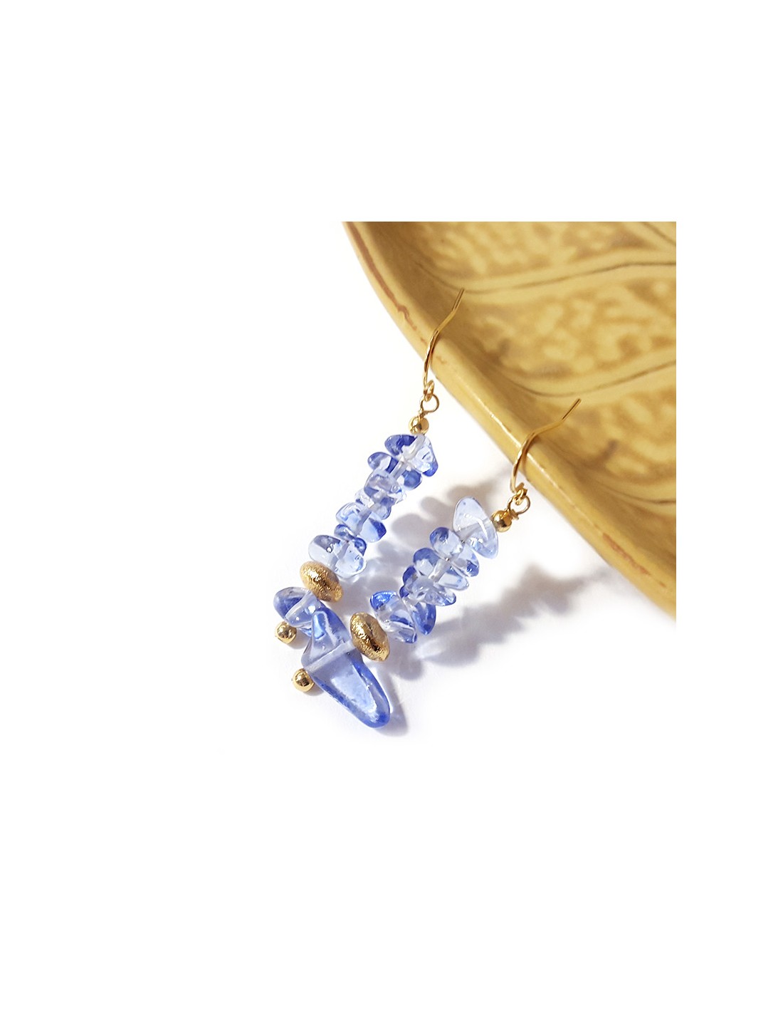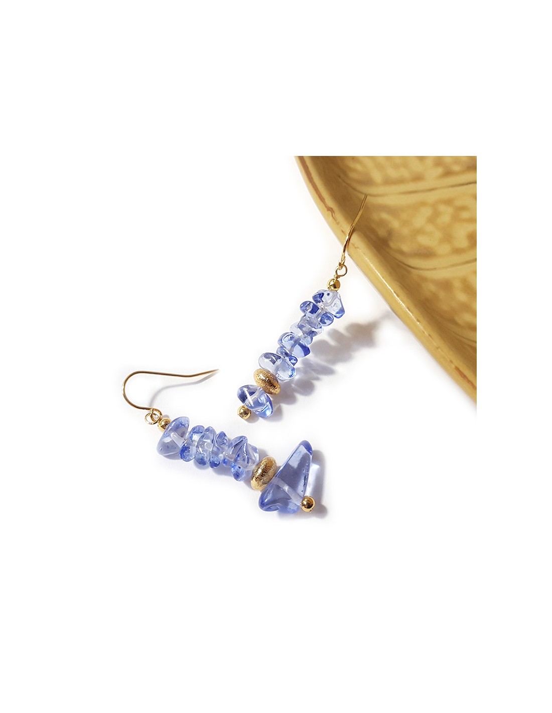 Diese schicken Ohrringe sind typisch für den Bohème-Stil! Natürlich, glänzend und ein wenig schräg, verleihen sie einen dezenten und trendigen Farbtupfer. Der durchscheinende, königsblaue Kristall verleiht dem Schmuckstück einen weichen, maritimen Touch.