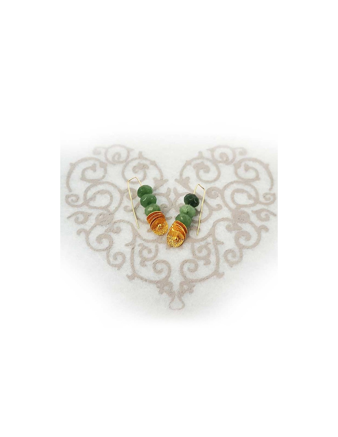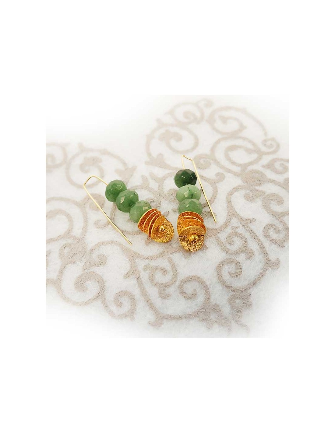 Hängende Ohrringe aus facettierter Jade und vergoldeten Chips