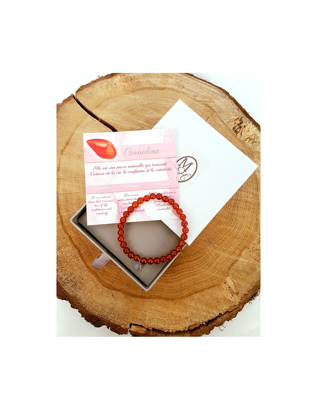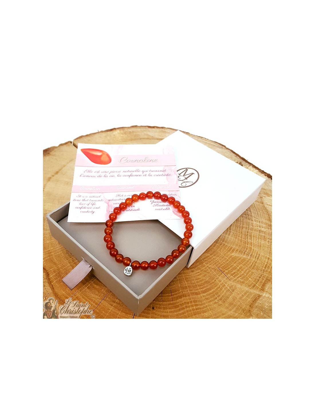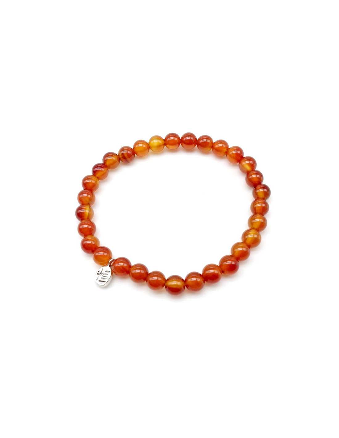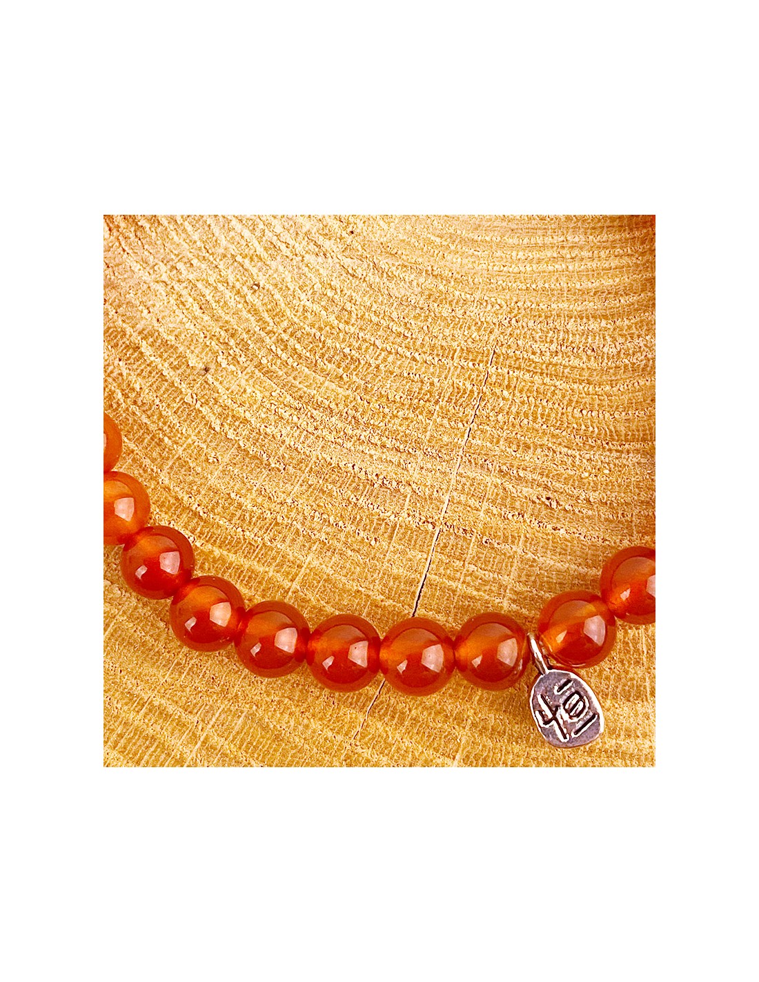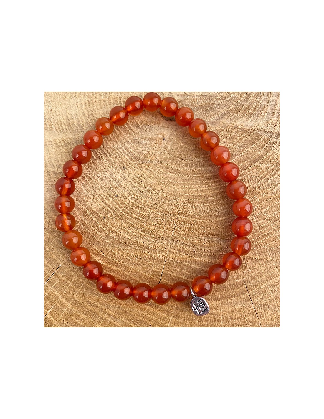 Armband mit elastischem Faden und Karneol, feinem Naturstein. Begleitet von einem kleinen silbernen Anhänger verleiht dieses Armband Ihrem Handgelenk einen sanften und ruhigen Touch.