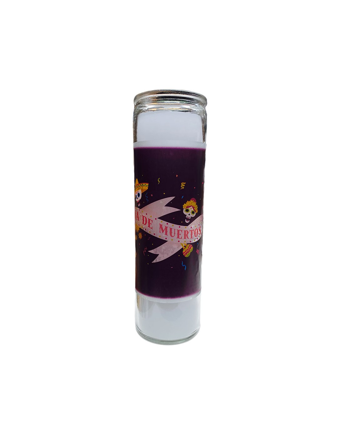 Mit dem Bild eines Banners und Calaveras für den Dia de Los Muertos ist diese Kerze perfekt, um für eine originelle Stimmung zu sorgen!