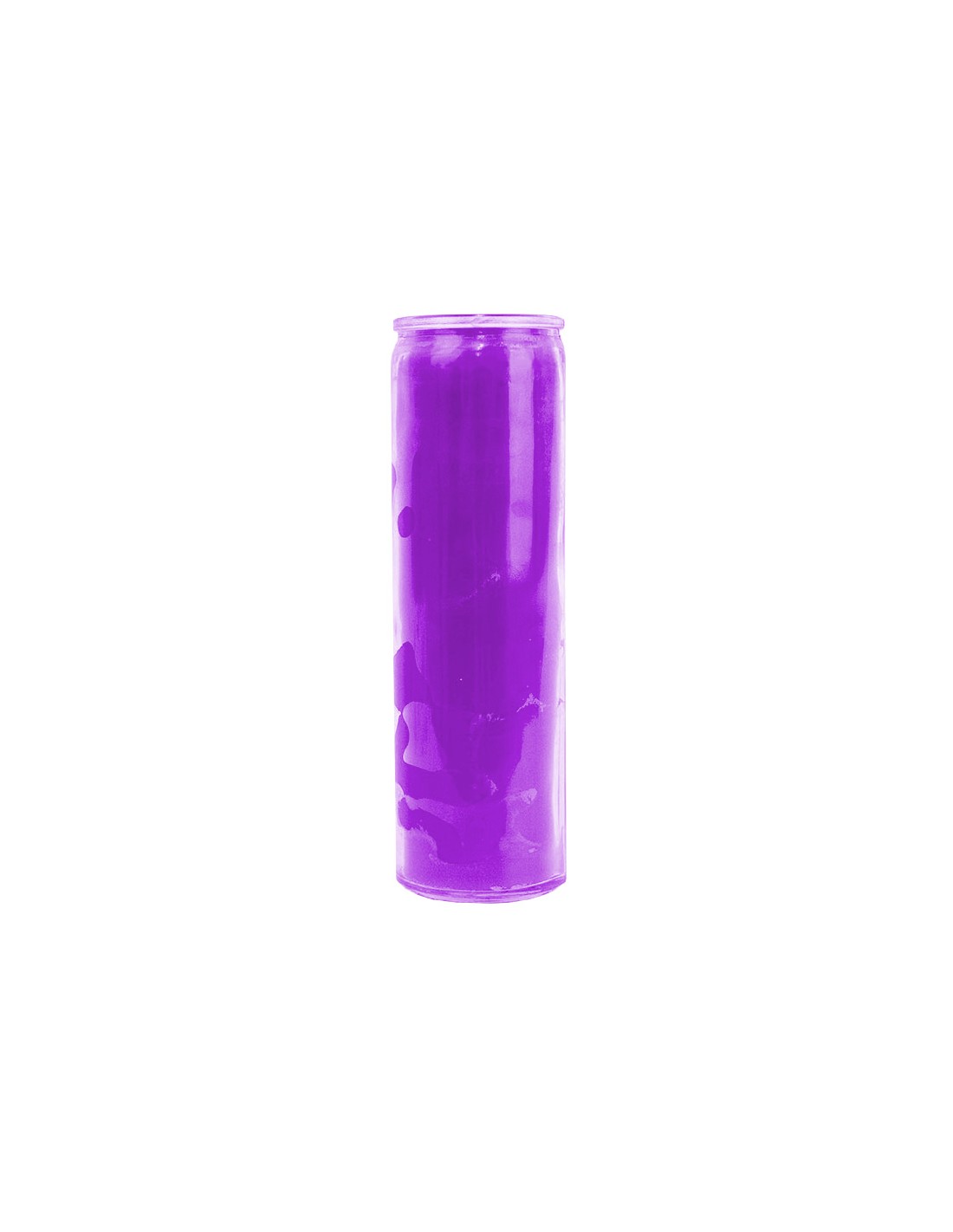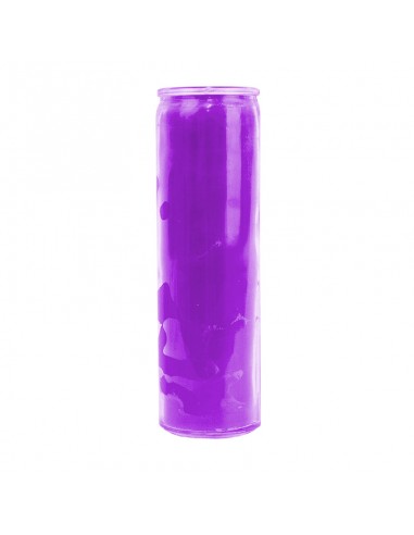 Kerze in einem festen Glasbehälter, die 168 Stunden lang brennen kann, was einer Brenndauer von 7 Tagen entspricht. Das Paraffin, das in seiner gesamten Masse schön violett ist, fließt in das Innere des Behälters und sorgt beim Abbrennen für einen Photophoreffekt, wobei die Flamme durch die dünne Wachsschicht leuchtet. Die Kerze kann zum reinen Vergnügen der Dekoration oder auch für spirituellere Zwecke wie Gebet, Meditation oder Esoterik verwendet werden.