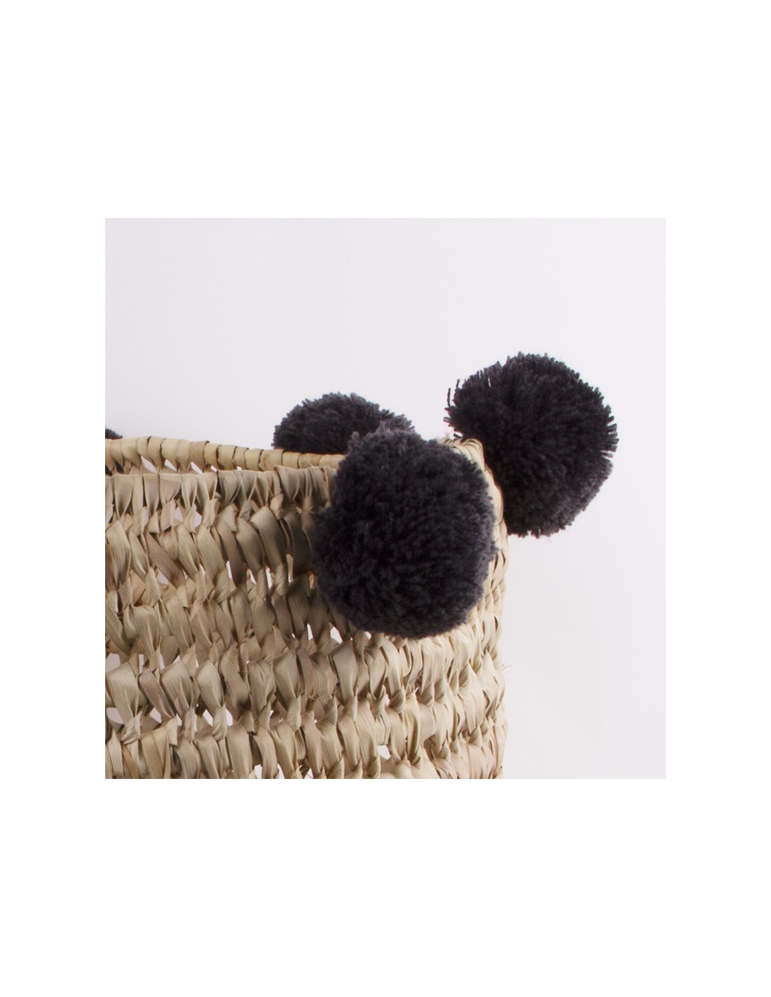 Set aus Palmblattkörben mit taupegrauen Pompons