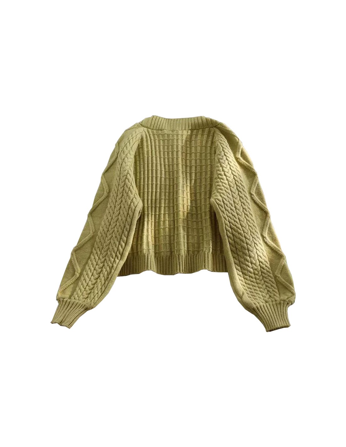 Diese Weste aus Wolle und Polyester in einem sanften Pistaziengrün mit dem Zopf- und Flechtmuster ihrer Wolle verleiht ihr eine zeitlos klassische Seite.