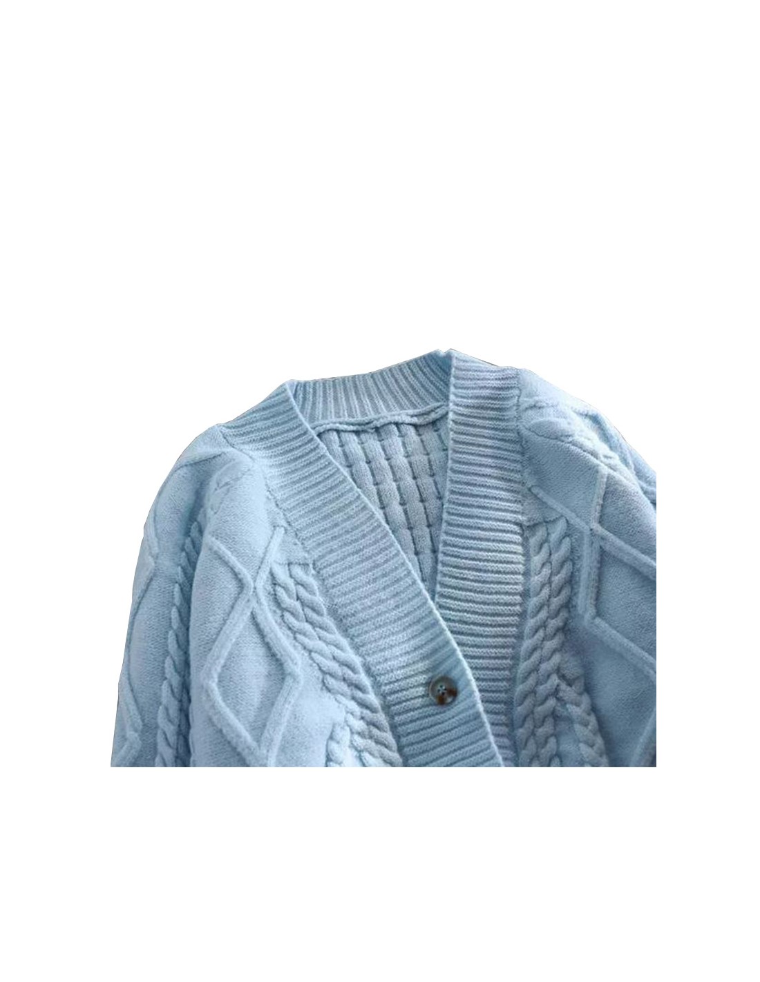 Diese Weste aus Wolle und Polyester in einem sanften Pastellblau mit einem gedrehten und geflochtenen Muster in der Wolle verleiht ihr eine zeitlos klassische Seite.