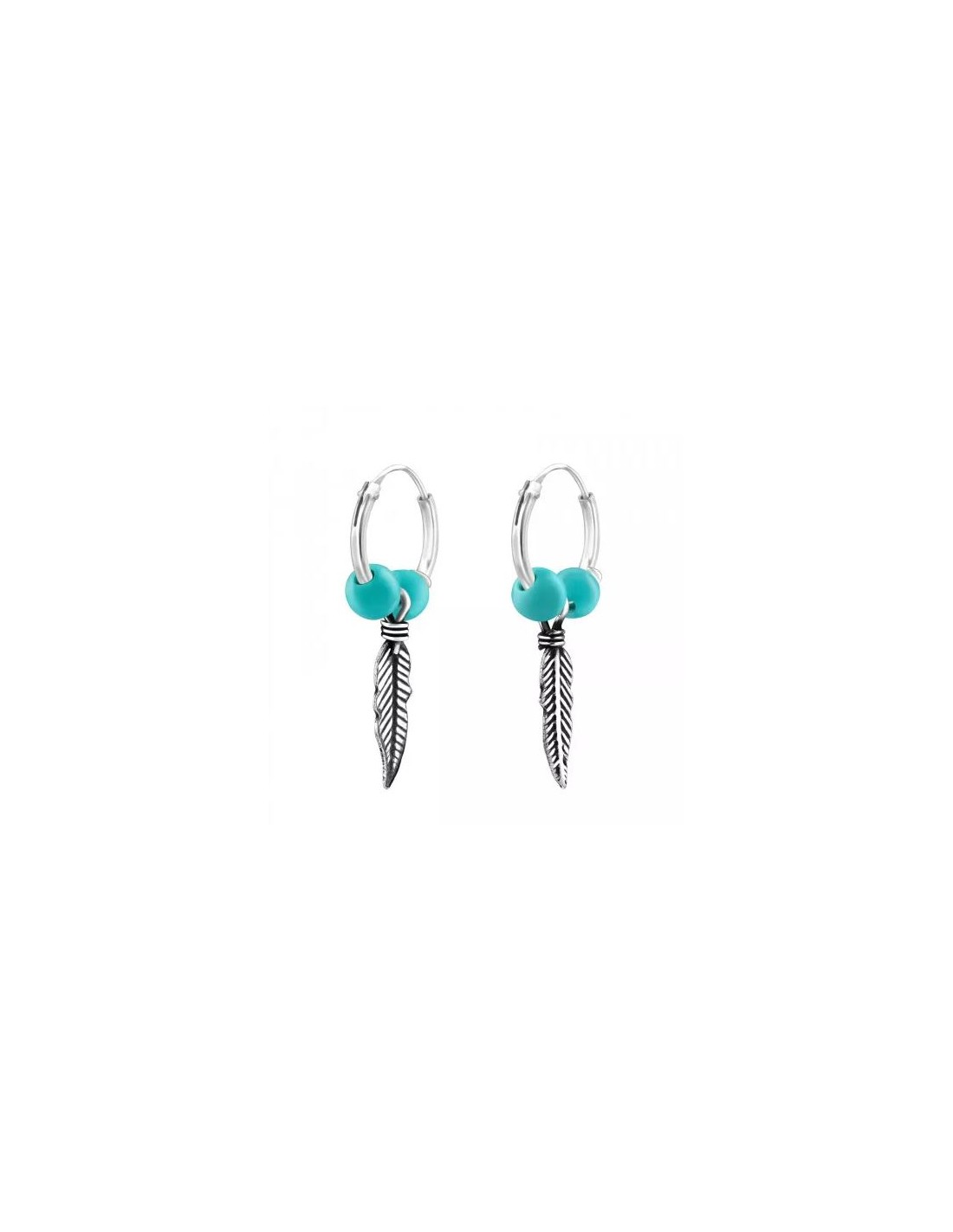 Ohrringe Federn und blaue Türkisperlen 925 Silber