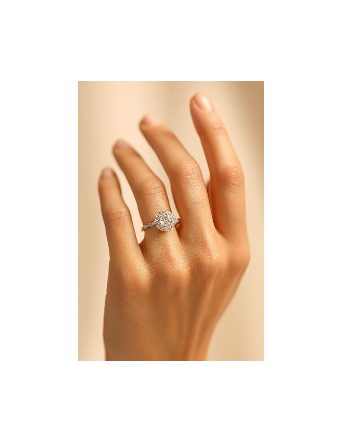Dieser elegante Ring funkelt so schön, dass er Ihnen den Kopf verdreht! Dieser Solitärdiamant ist wunderschön und perfekt für schicke Abende. Das Mittelstück sowie alle gefassten Kristalle sind weiße Zirkonia.