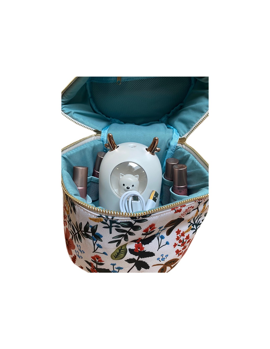 Wunderschöne Tasche mit Blumen- und Vintage-Dekor, in der Sie Ihre ätherischen Öle und Ihren Diffusor stilvoll transportieren können. Diese hübsche Tasche aus strapazierfähigem Baumwollcanvas hat mehrere Plätze zum Verstauen Ihrer Flakons und einen großen Platz in der Mitte für einen Diffusor oder Ihre Kosmetikartikel.