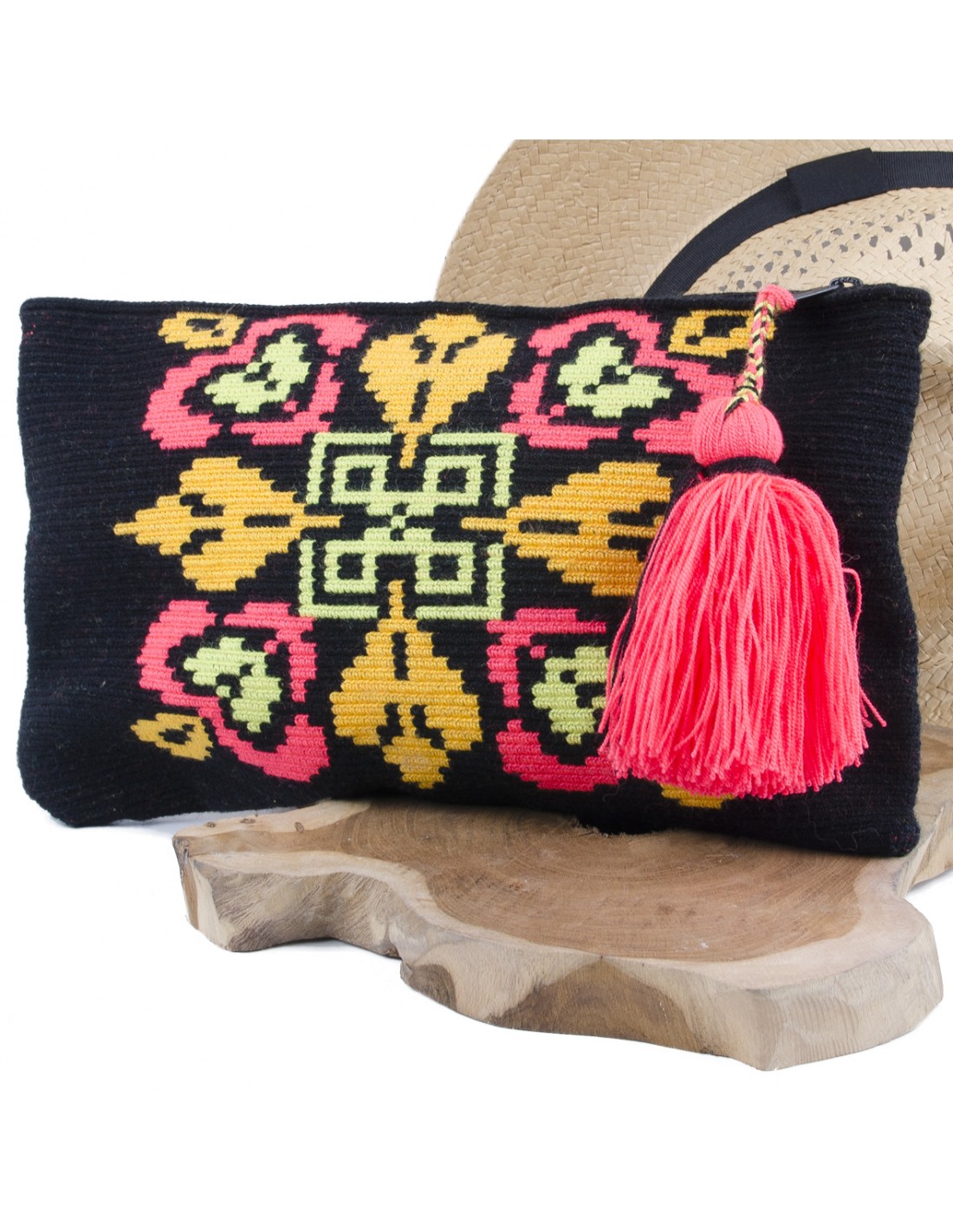 Vom Volk der Wayuu, das in Kolumbien und Venezuela ansässig ist, werden diese Taschen Mochila Wayuu (Wayuu-Tasche auf Spanisch) genannt. Vollständig von den Frauen handgefertigt, ist jedes Stück ein Unikat, das zwischen 15 und 30 Stunden Arbeit in Anspruch nehmen kann!