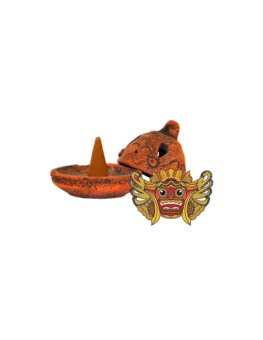 Dieser Räucherkegel-Halter wurde von Handwerkern in Terrakotta handgefertigt. Sie wird begleitet von zehn Räucherkegeln mit einem süßen balinesischen Duft, der gleichzeitig süß und betörend riecht. Sie finden in der Schachtel auch ein kleines dekoratives Holz, das mit dem Weihrauch verbrannt werden kann.