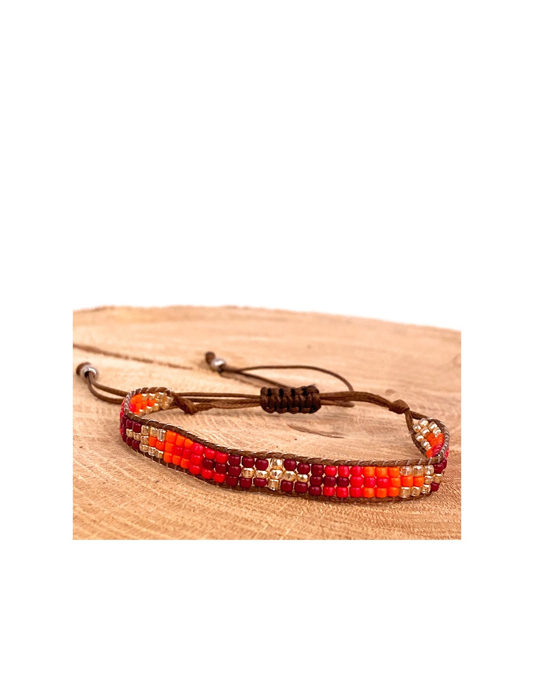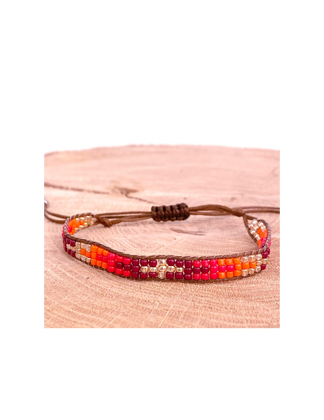 This fine beaded bracelet with geometric patterns is reminiscent of Brazilian bracelets but better! The attachment, a macramé knot, ends with two silver beads. The beads are shiny, sometimes gold or silver depending on the model.