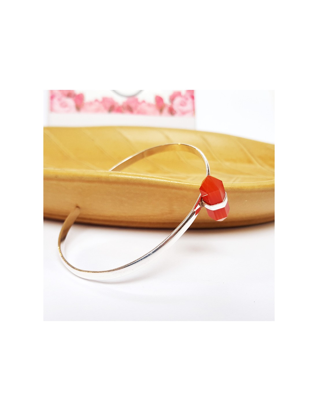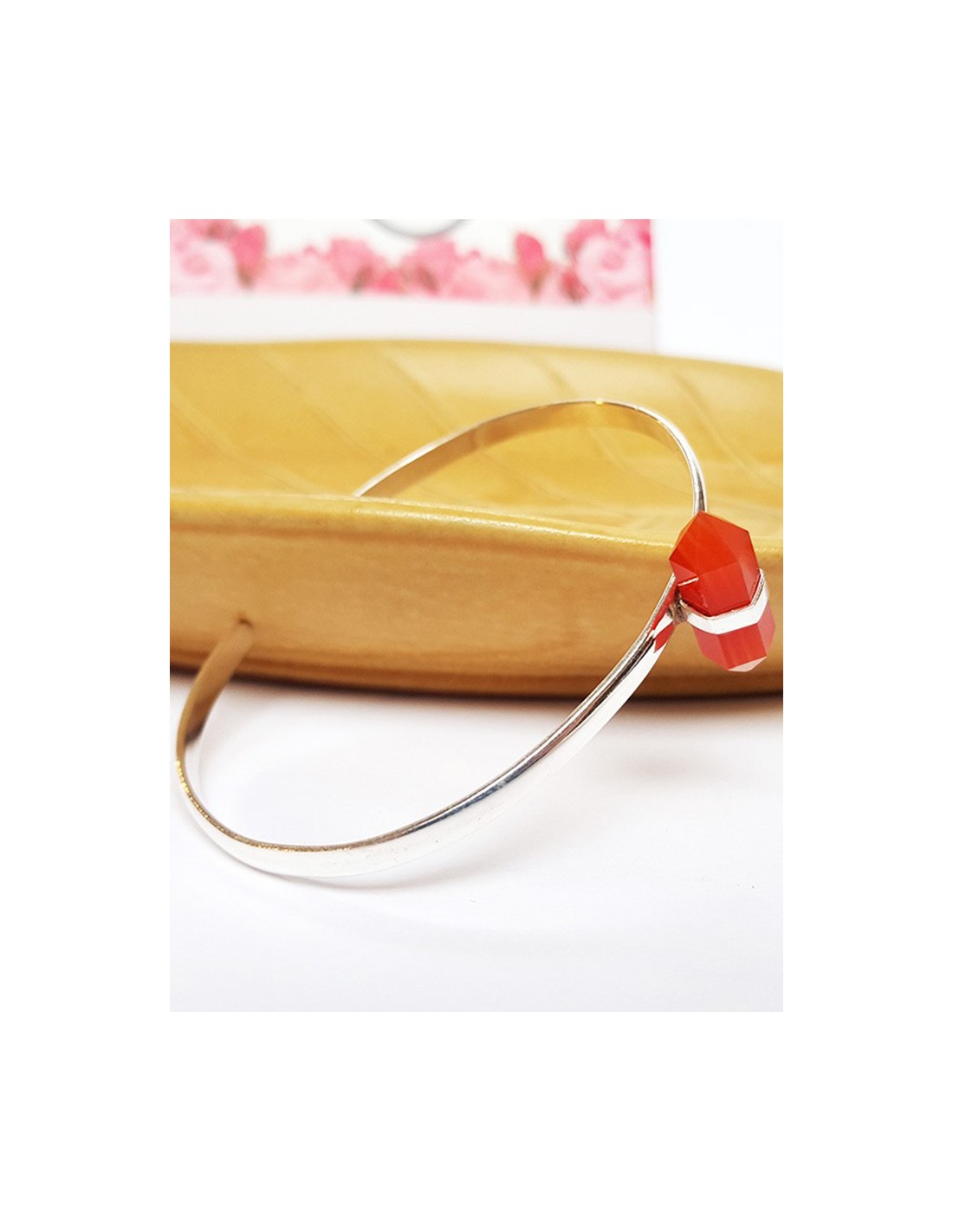 This genuine 925 silver bracelet is adorned with a fine sardonyx stone cut into a double point. Discreet and chic accessory, its refined design highlights the fine stone.