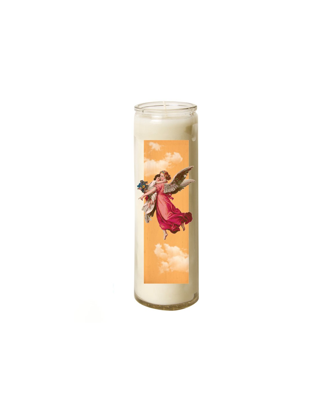 With the image of vintage angels flying in an orange sky as decoration, this candle can be used for prayer, meditation, decoration or esotericism.