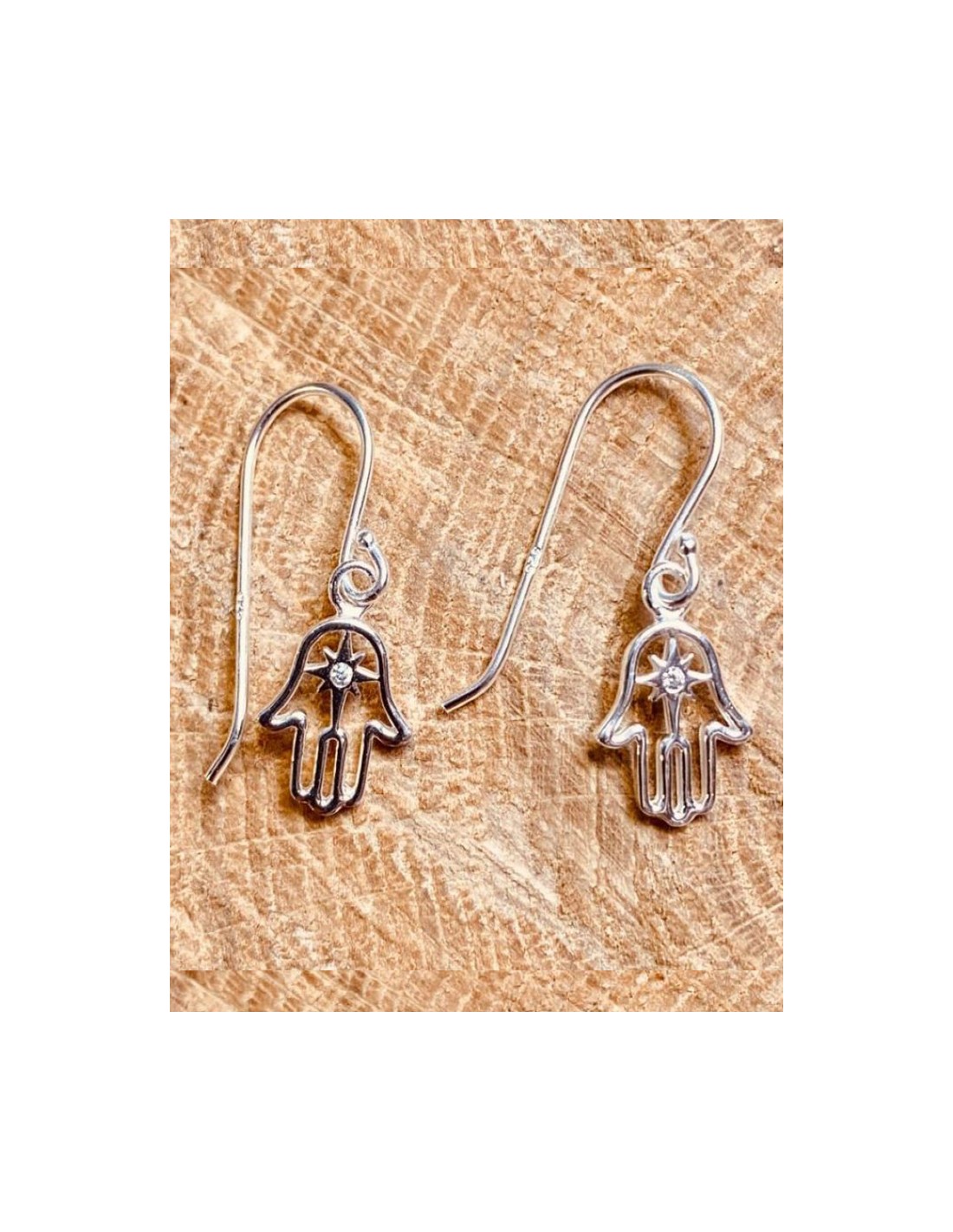 925 silver earrings with starry Fatma hand and zircon.