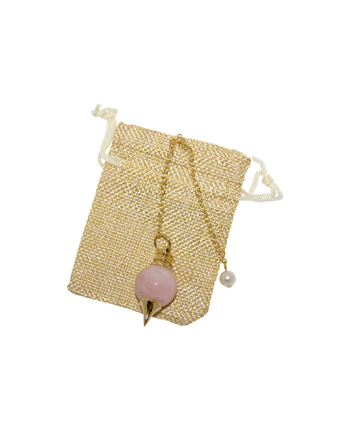 Sephroton clock with golden chain, with a pearl at the end for a nice hold. The sphere is a rose quartz.