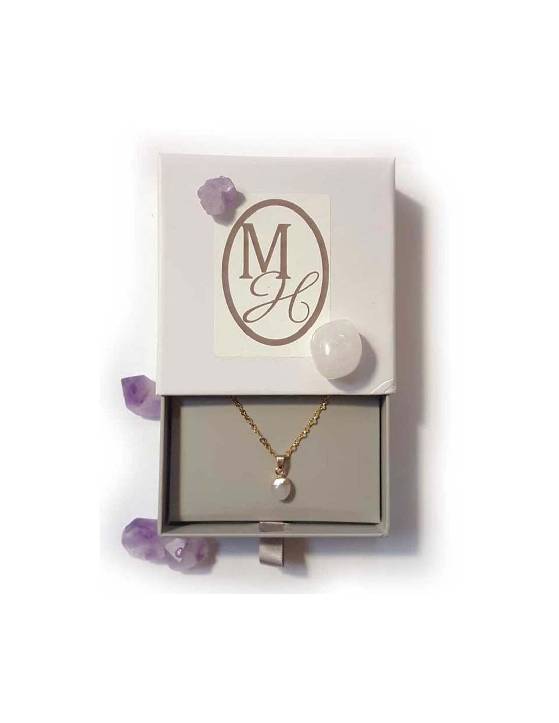 This rock crystal pendant is discreet and charming. Gold plated at the top, the stone is delicately cut into a teardrop shape and faceted. The gold-plated chain is included.