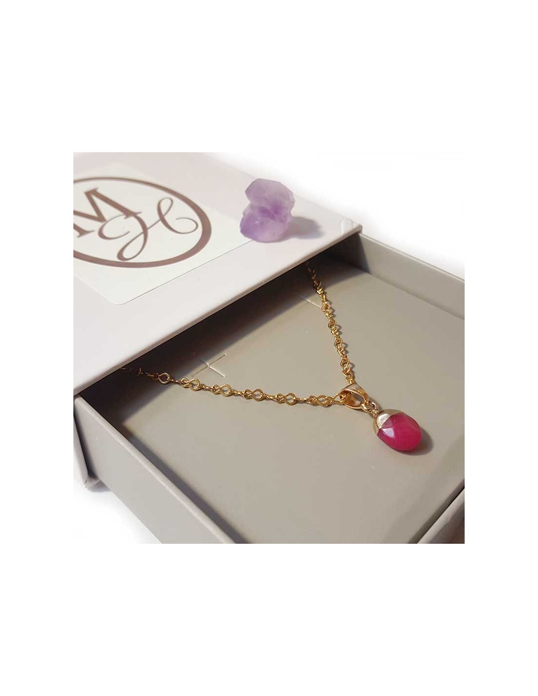 This red jasper pendant is discreet and charming. Gold plated at the top, the stone is delicately cut into a teardrop shape and faceted. The gold-plated chain is included.