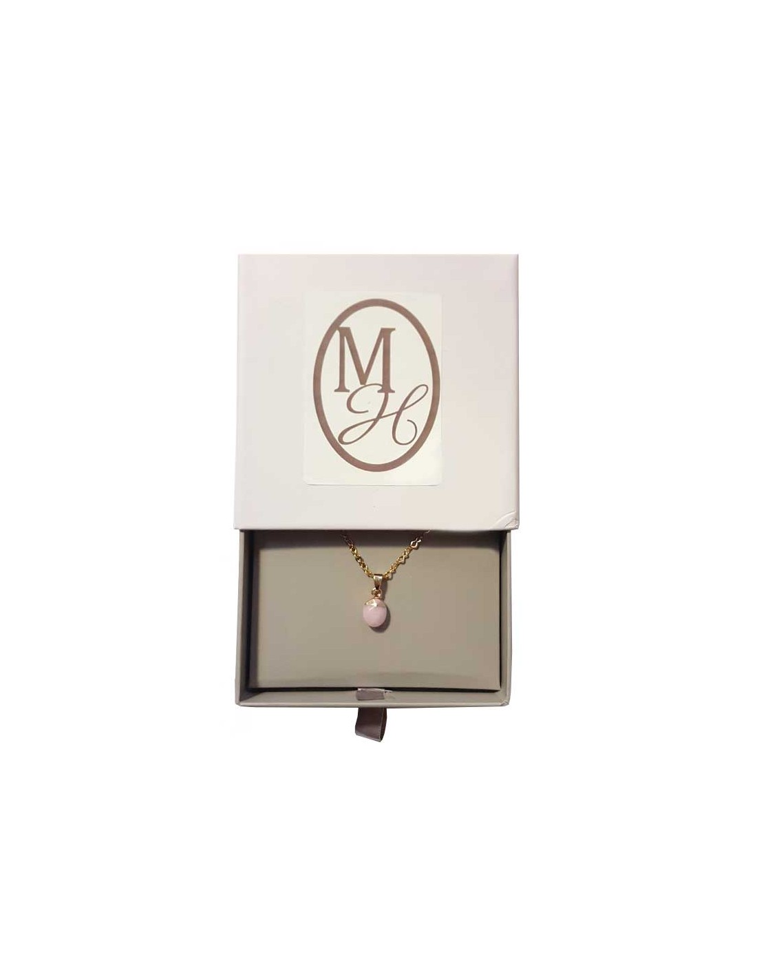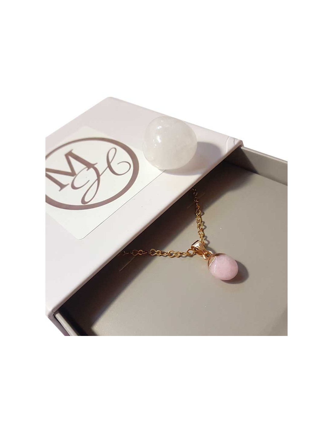 This pink jasper pendant is discreet and charming. Gold plated at the top, the synthetic stone is delicately cut into a teardrop shape and faceted. The gold-plated chain comes with it.
