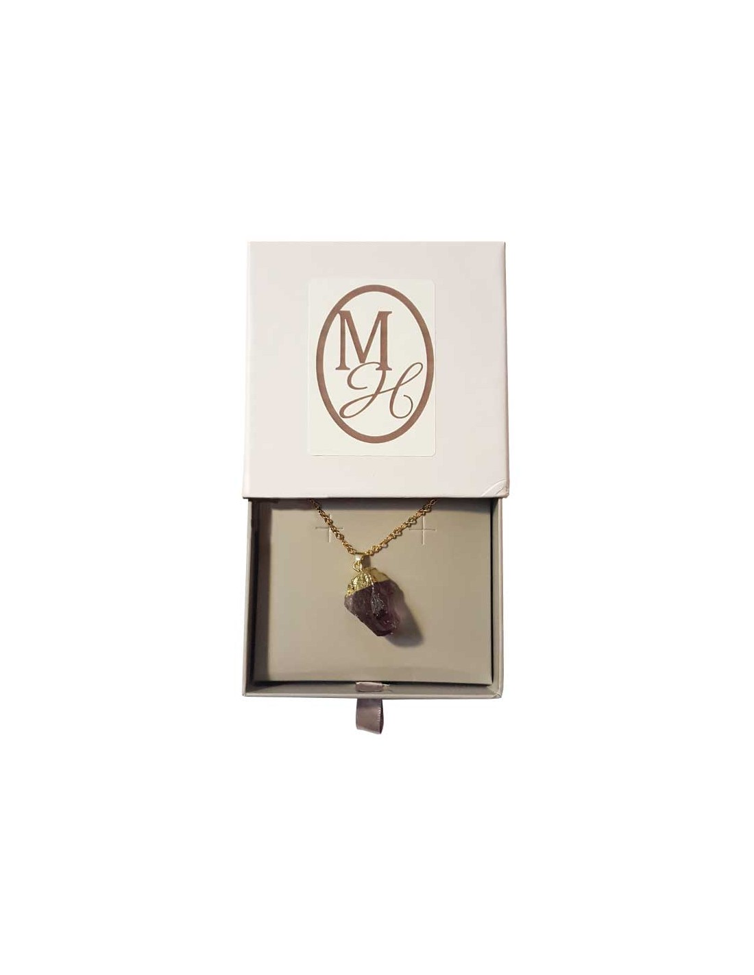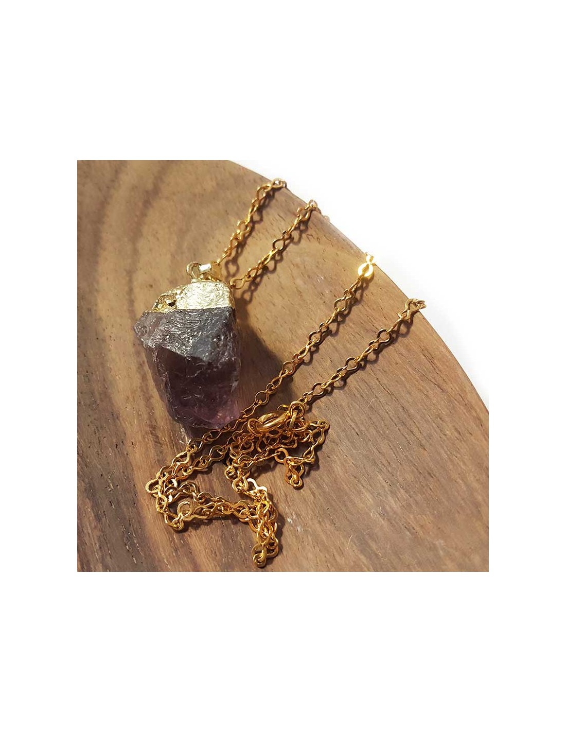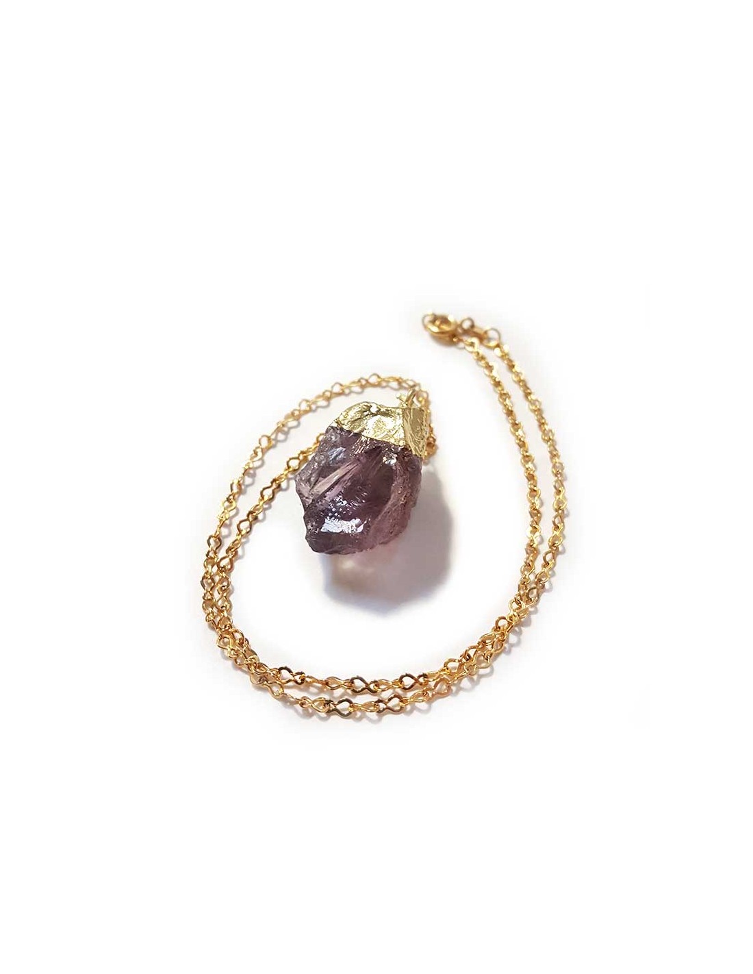 Necklace with rough amethyst stone pendant. The chain provided with the pendant is available in several models.