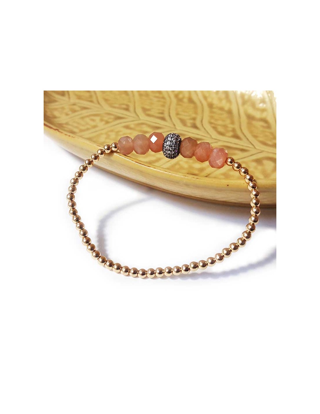 Thin and shiny, this chic bracelet is perfect for a natural, polished mood. The golden beads add luminous pep and highlight the faceted sunstone beads.