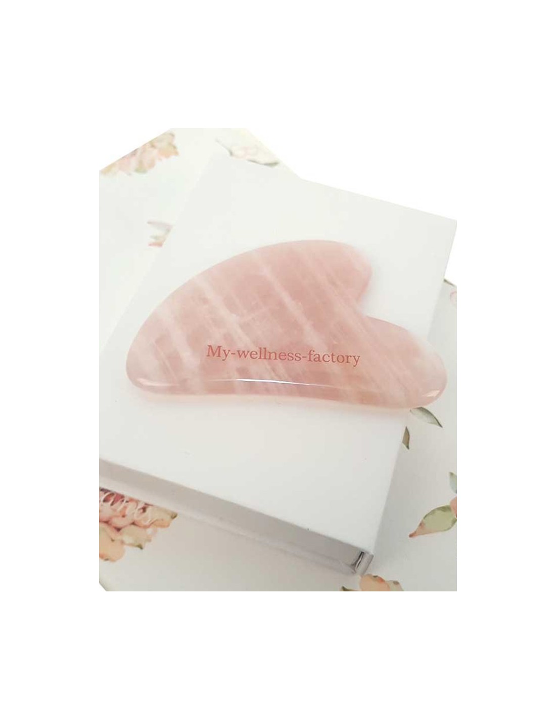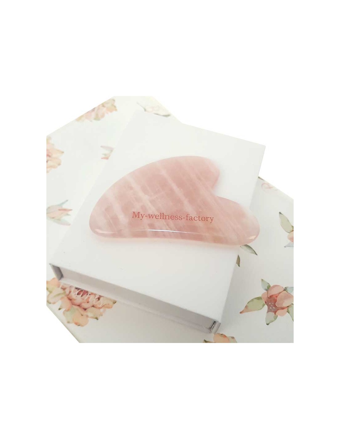 In addition to the gua sha massage, which firms and detoxifies the skin, rose quartz also has interesting properties that combine perfectly for an ideal well-being. Stone of Unconditional Love par excellence, it opens the heart chakra to all the types of love and friendship you need. It helps to free oneself from toxic emotions and promotes self-care.