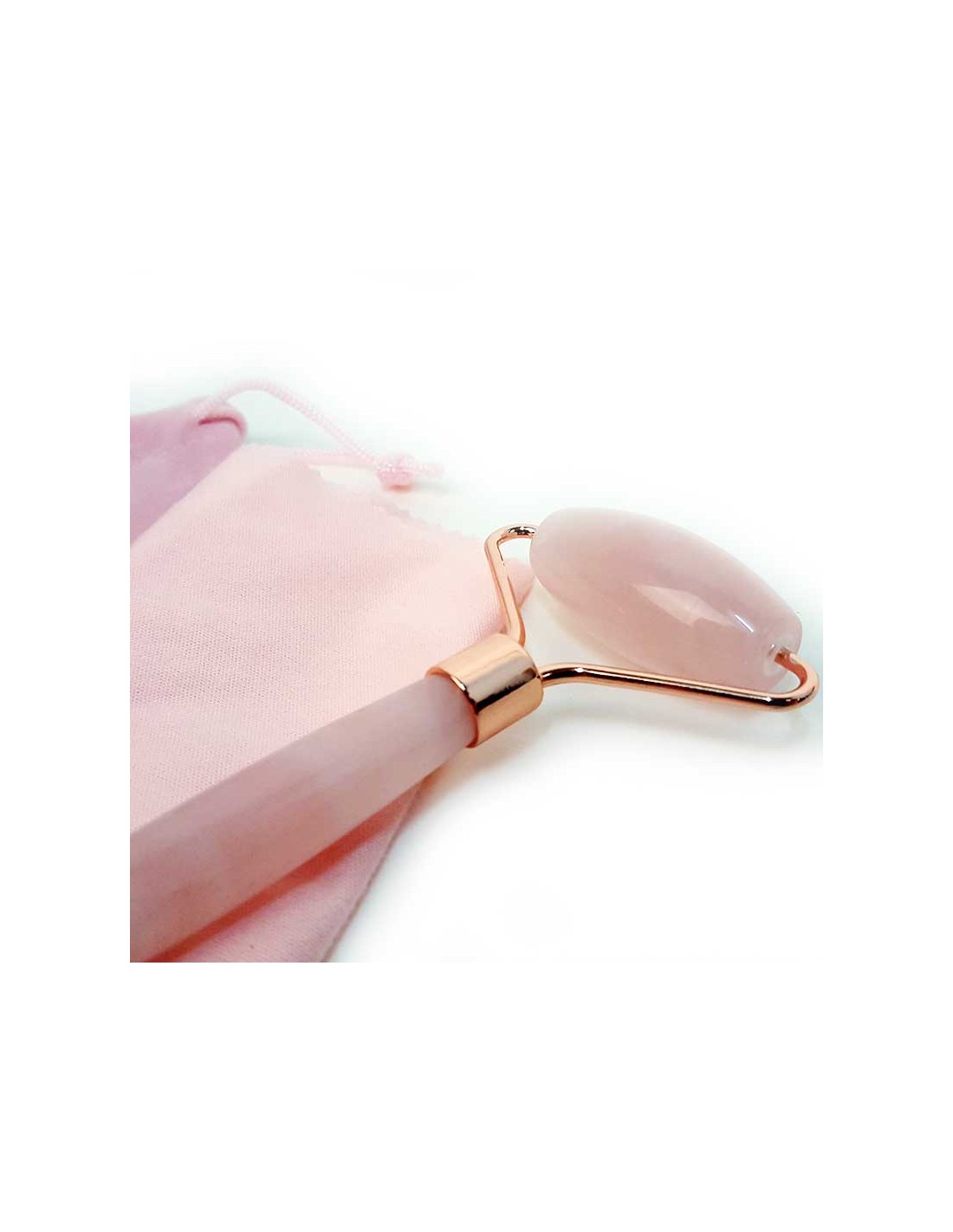 Rose quartz massage roller for the face. An essential beauty accessory in Asian countries, this age-old technique stimulates the skin to revitalize it, smooth it, boost its radiance and reduce dark circles and wrinkles.