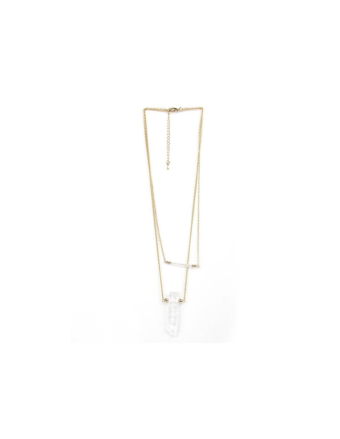 Gold-plated metal necklace with two rows of rock crystal pendant.