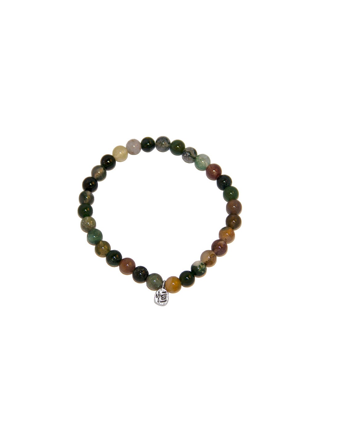 Elastic thread bracelet with Indian agate, fine natural stone. Accompanied by a small silver charm, this bracelet gives a soft and serene touch to your wrist.