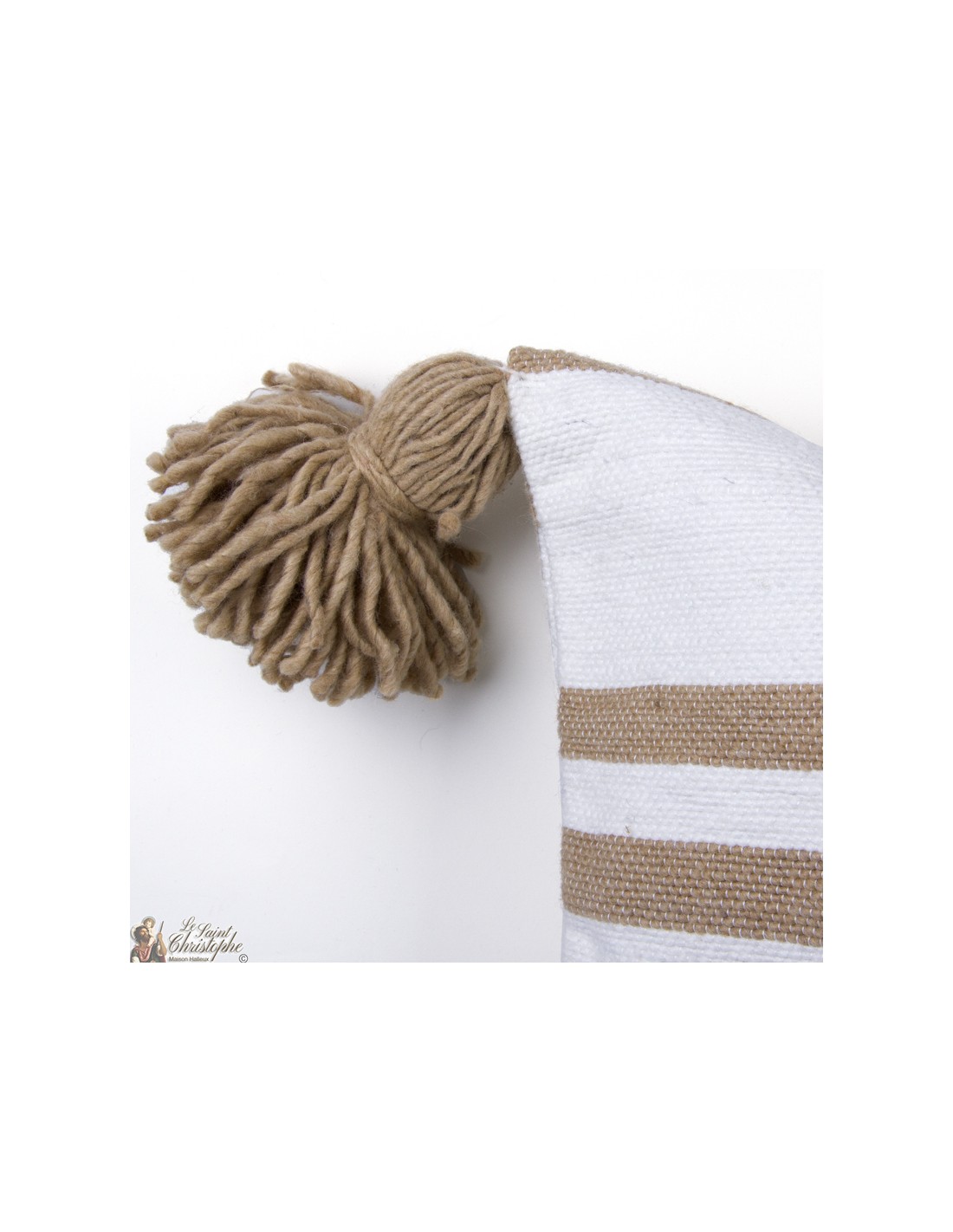 Cushion cover from the crafts of the world, a simple model that can be declined according to taste while keeping a fantasy and cocoon aesthetic with the pompoms.