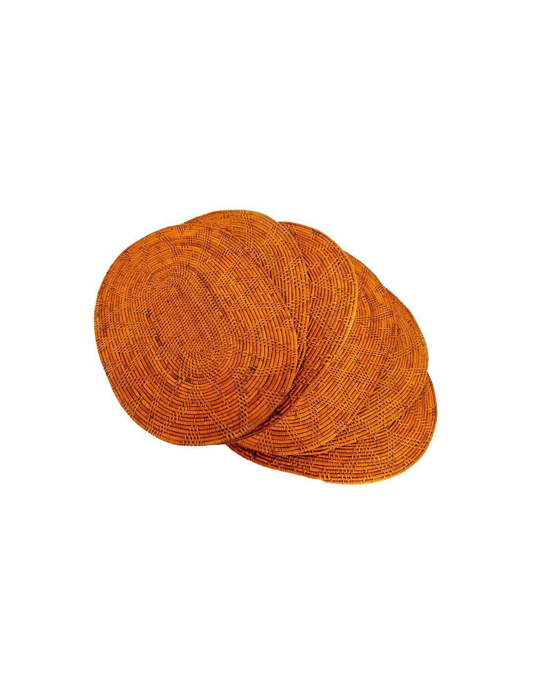 Set of 6 woven rattan coasters. A useful and decorative table accessory.