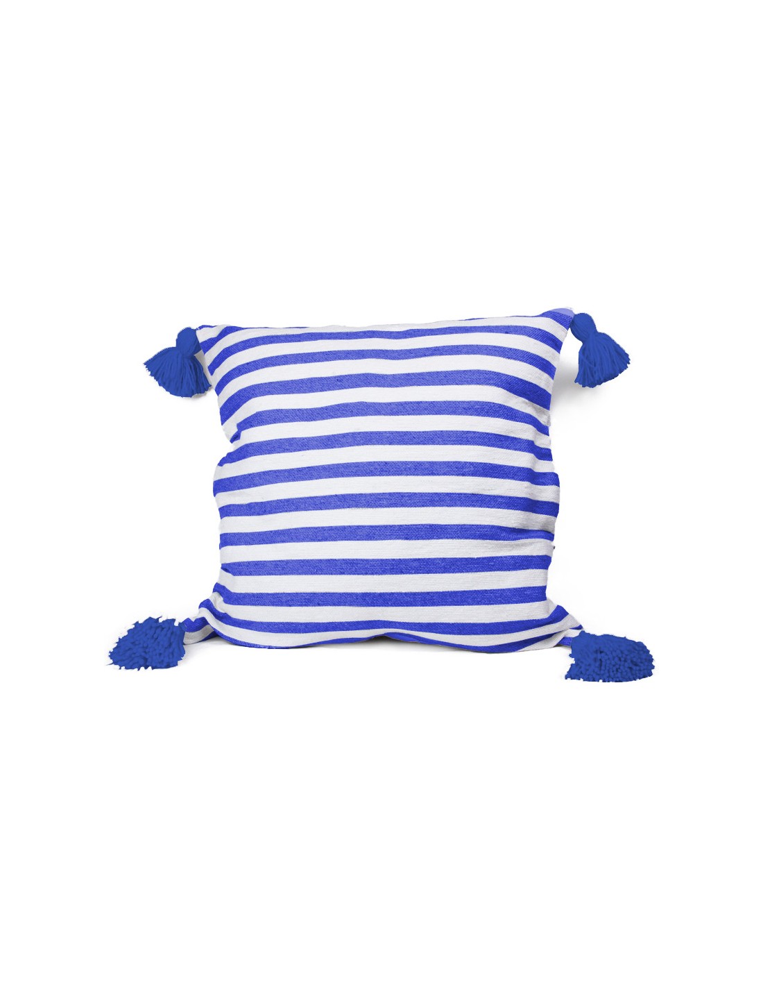 Cotton cushion cover, hand woven by local artisans. It is lined with blue and gray, a simple aesthetic that blends with any type of interior.
