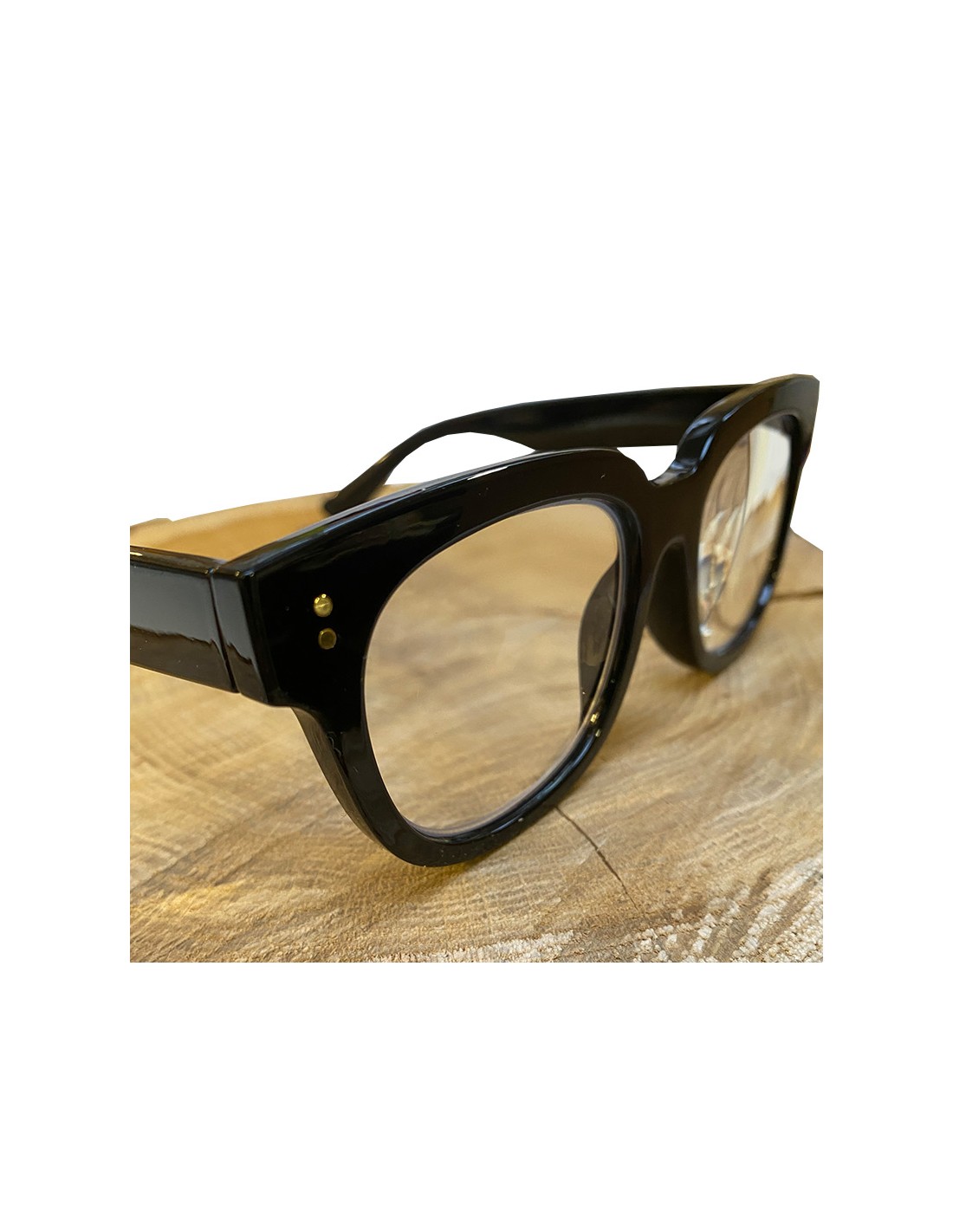 Black reading glasses with diopter correction and blue light filter. The thick frame style is reminiscent of 60's fashion, for a vintage touch. Black is timeless and goes with everything.