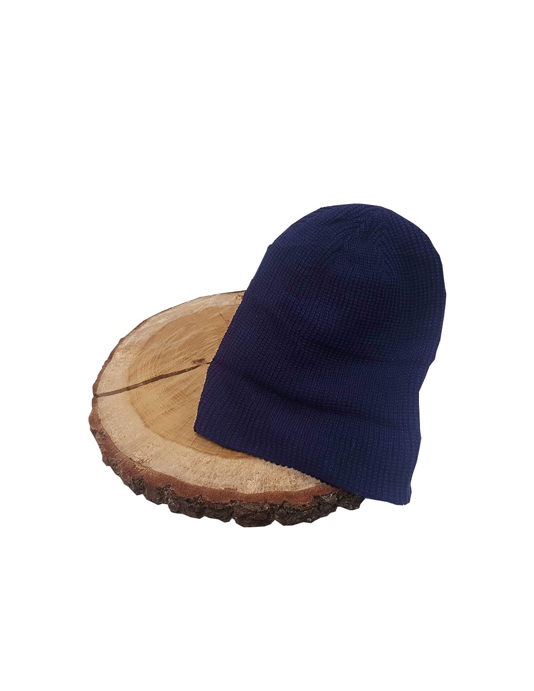 Navy blue knitted wool hat. Practical and trendy, the woolen hat is a must-have accessory.
