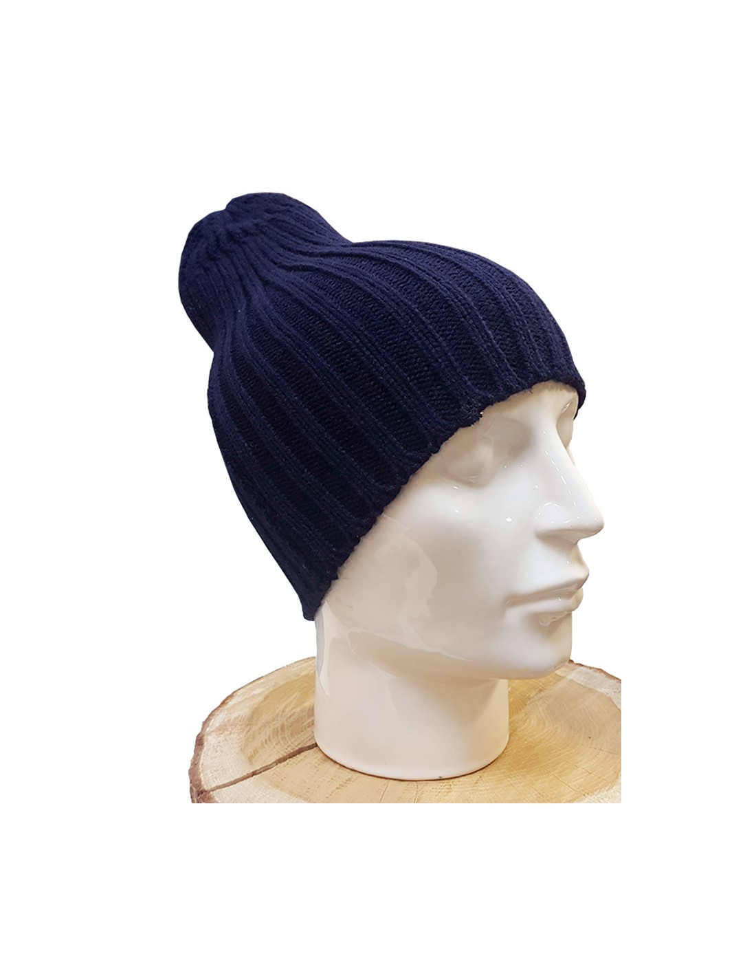 Navy blue woolen hat knitted with large stitches. Practical and trendy, the woolen hat is a must-have accessory.